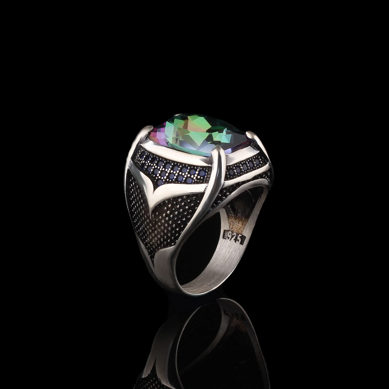 BayVog 925 Sterling Silver Mens Ring with Mystic Topaz Gemstone, Handmade Men