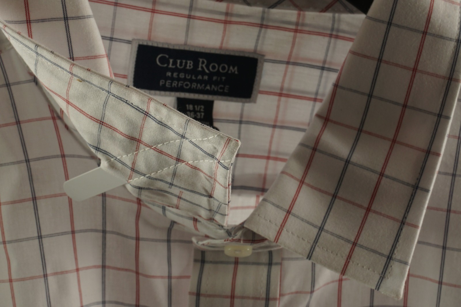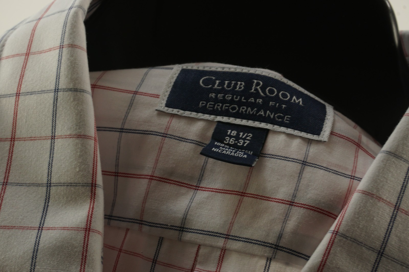 New 60 Club Room Performance Cotton Men's 18.5 36-37 White Check Dress Shirt