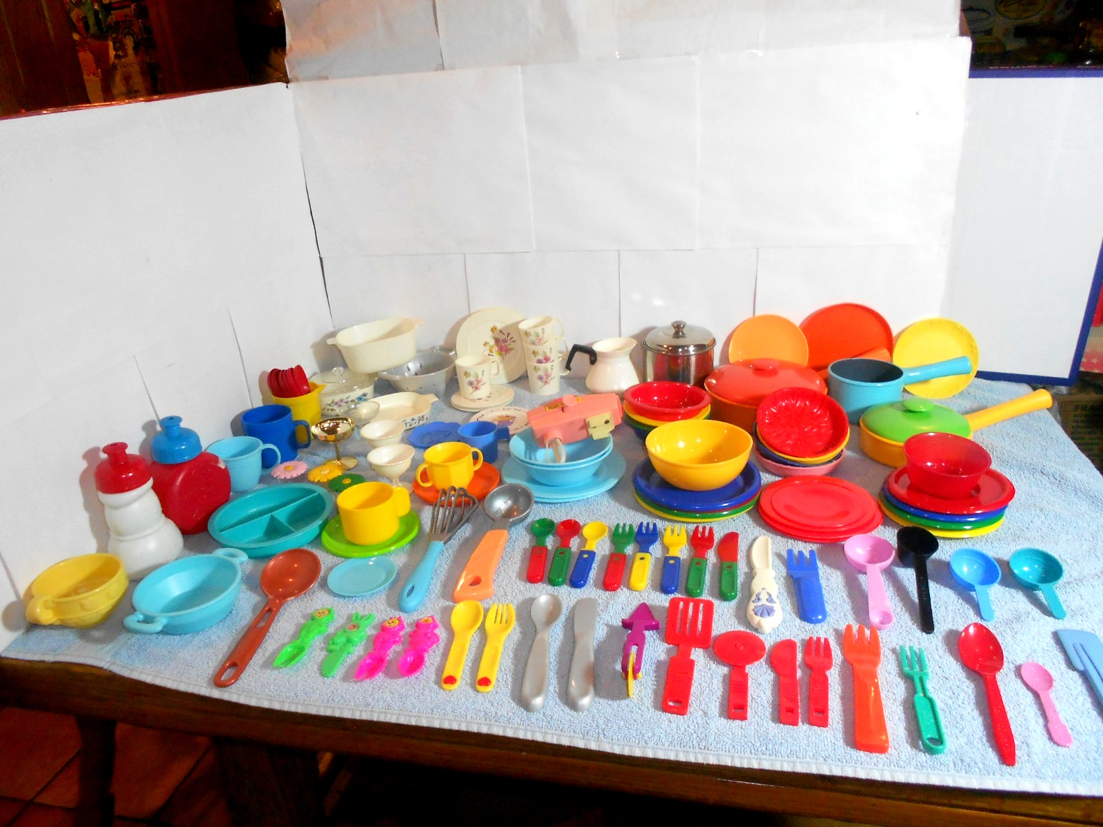 как выглядит 115 PIECE VINTAGE CHILDRENS - KIDS KITCHEN PLAY SET -POTS DISHES UTENSILS - L413 фото