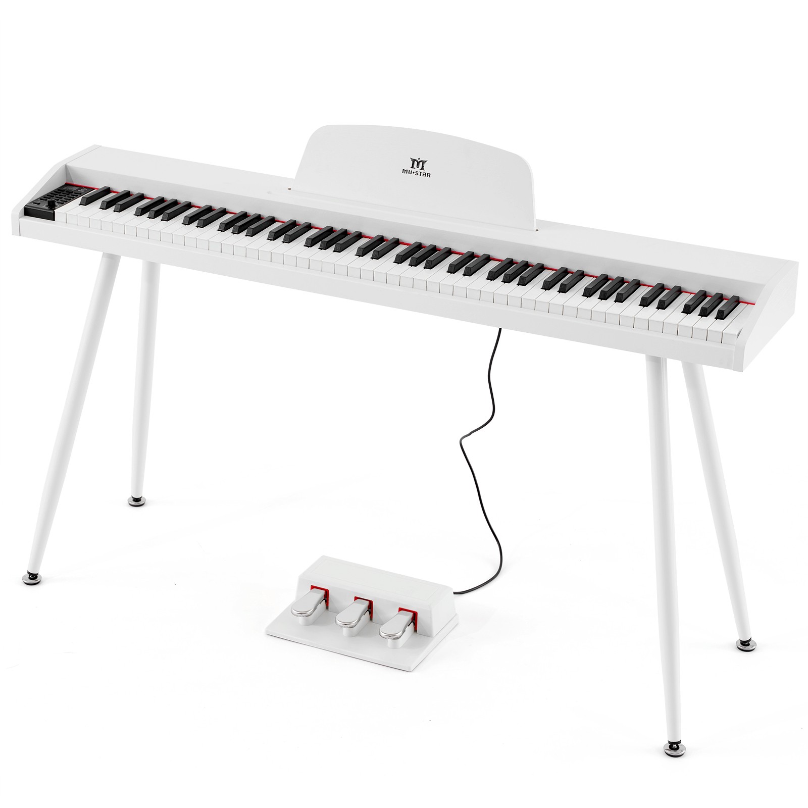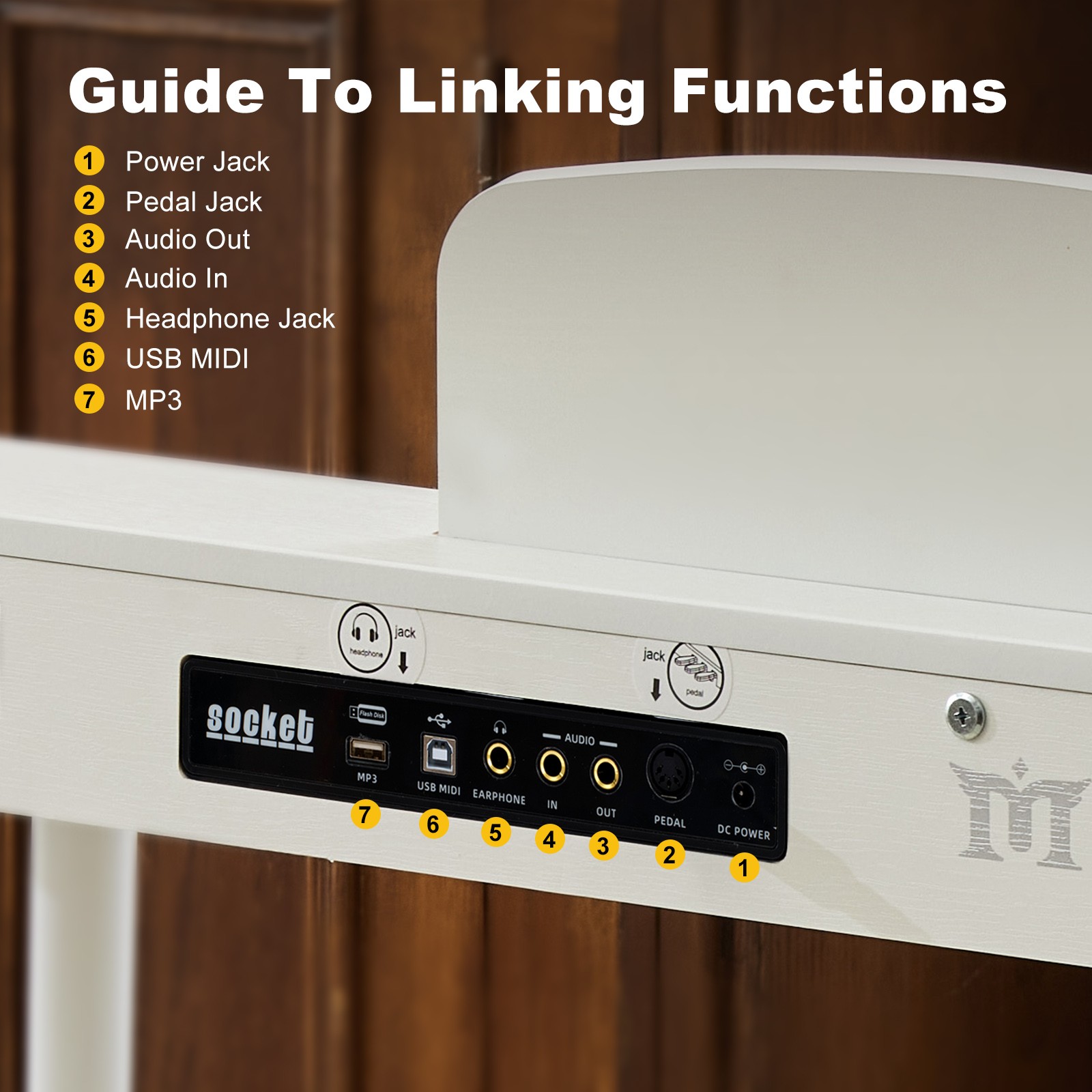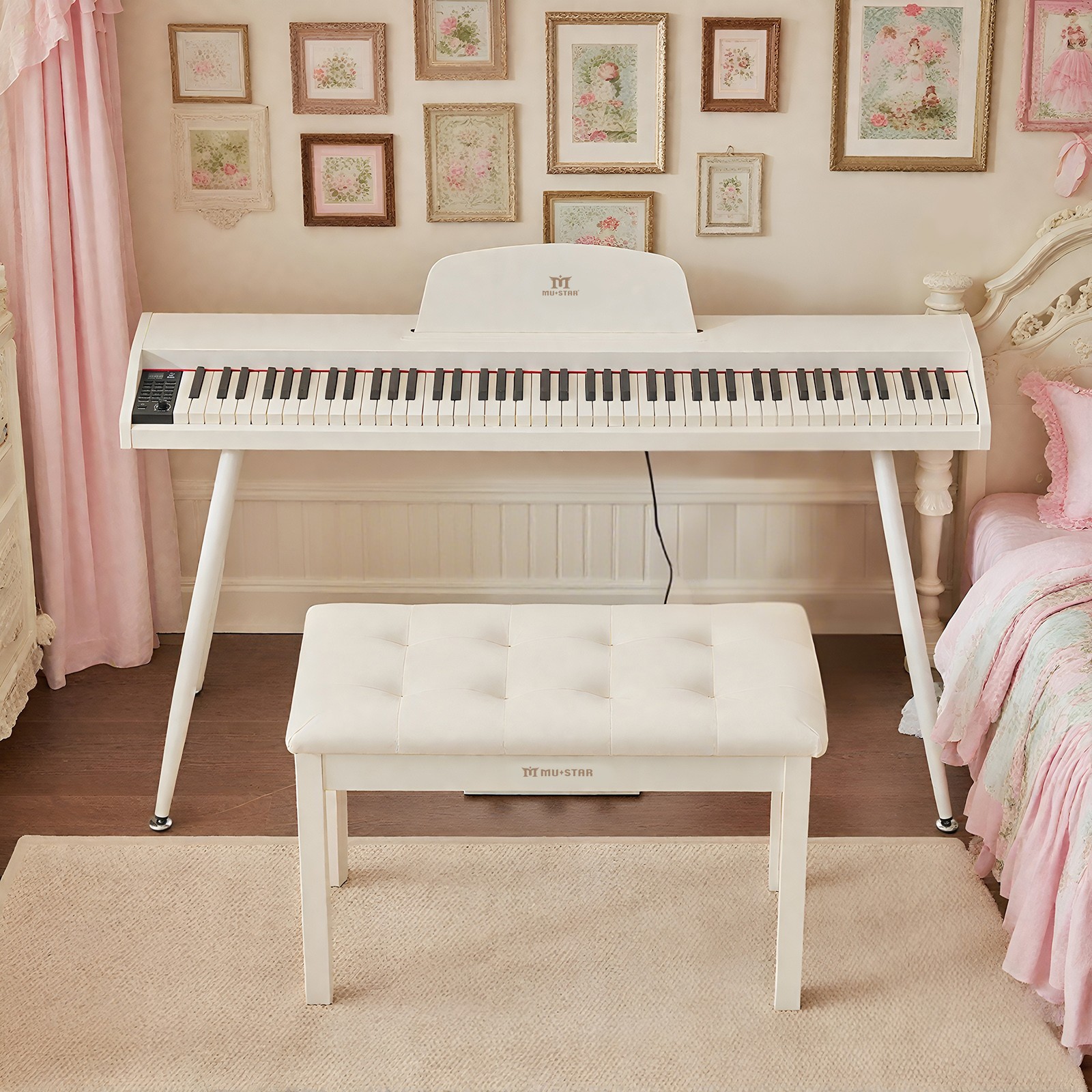 88Key White Digital Piano Semi Weighted Electric Keyboards 3Pedal,USB/MIDI,Bench