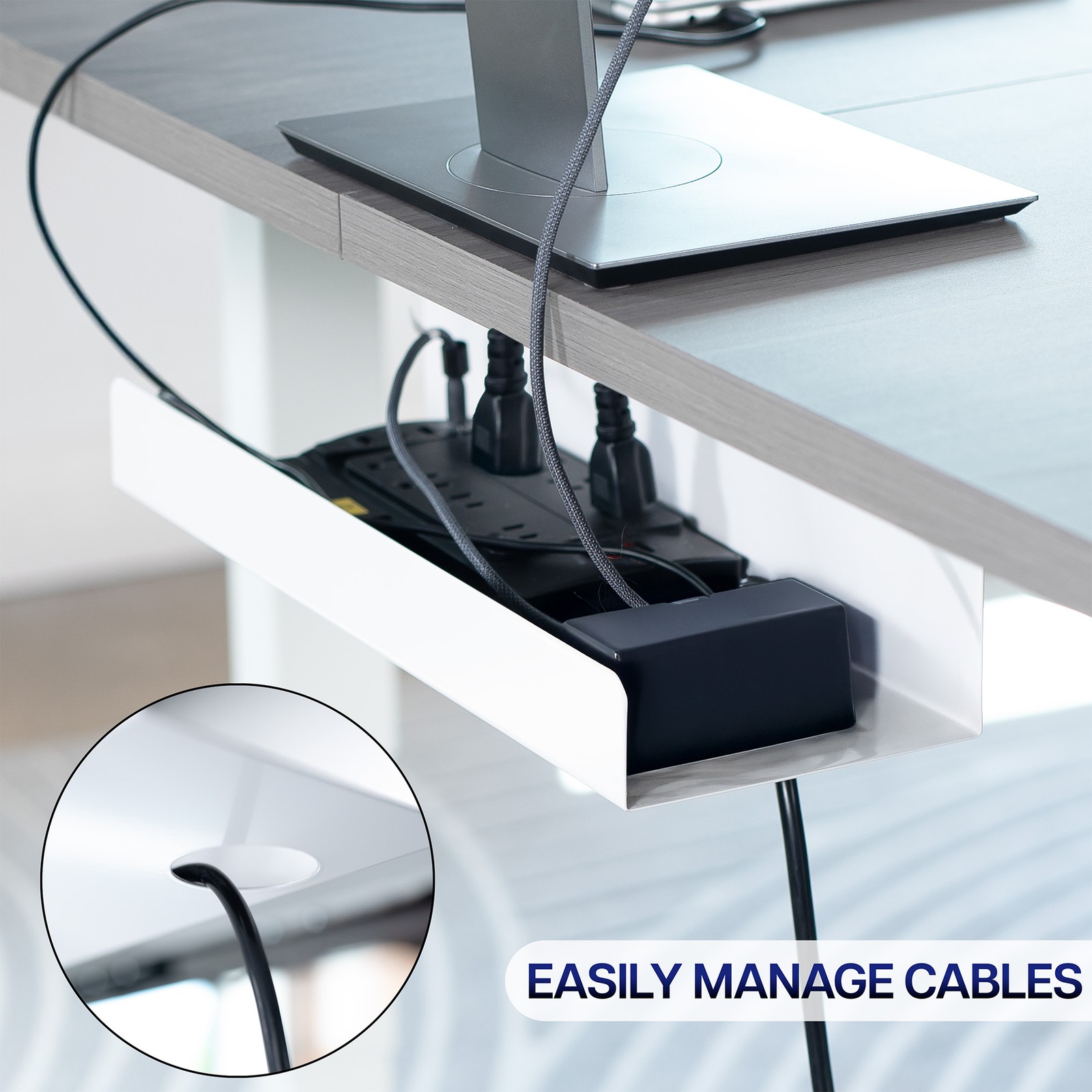 VIVO White Extra Deep Under Desk Cable Management Tray