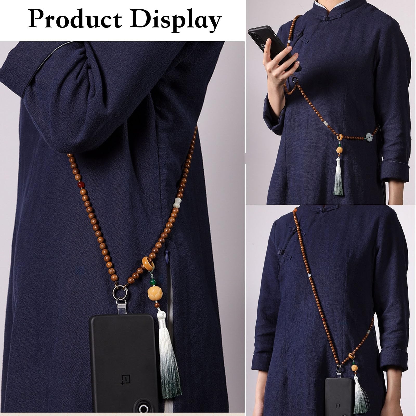 Wood Beaded Phone Lanyard, Crossbody Strap with Tether Tab for Phones Bags Purse