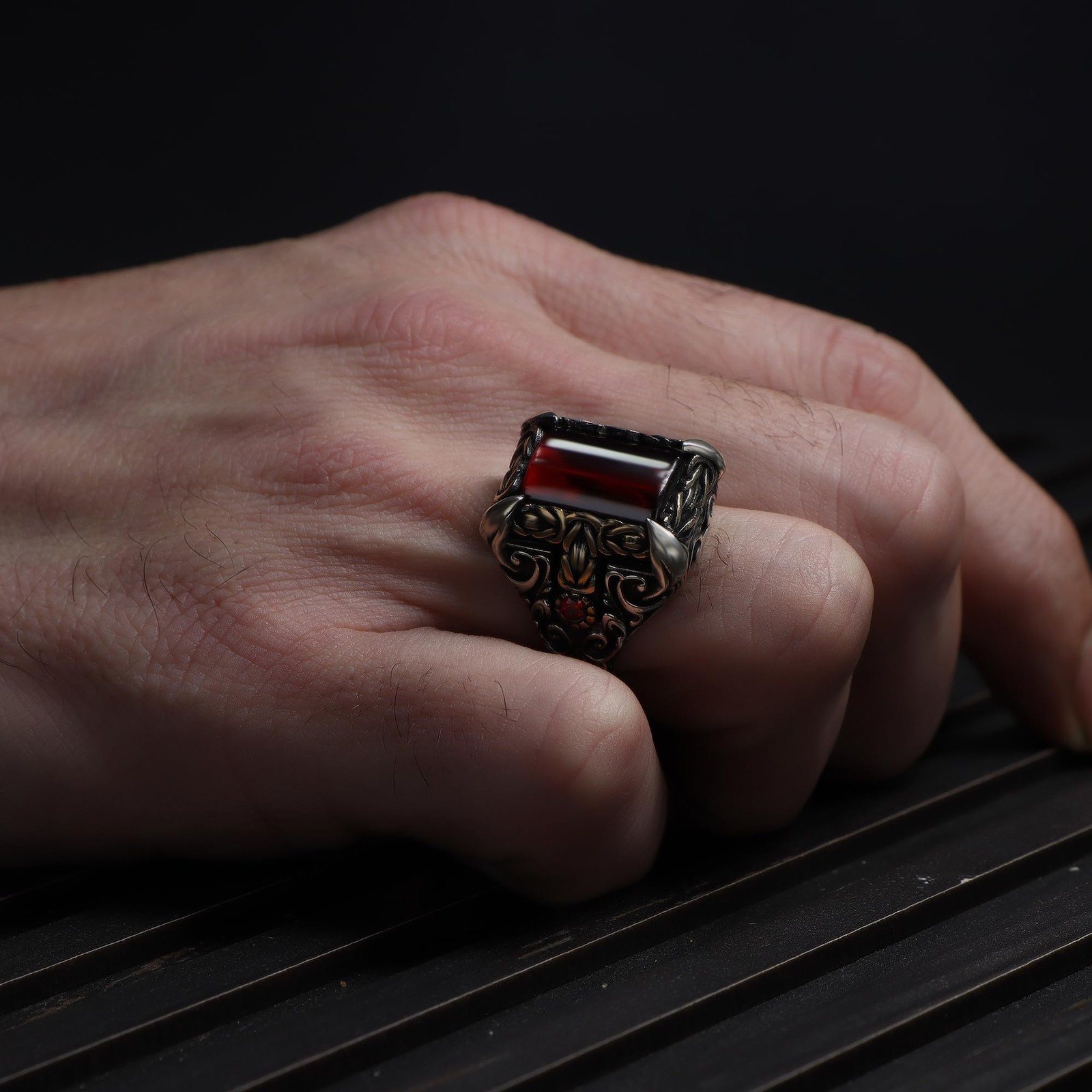 как выглядит BayVog Byzantine Chain Design 925 Sterling Silver Garnet Stone Mens Ring, фото