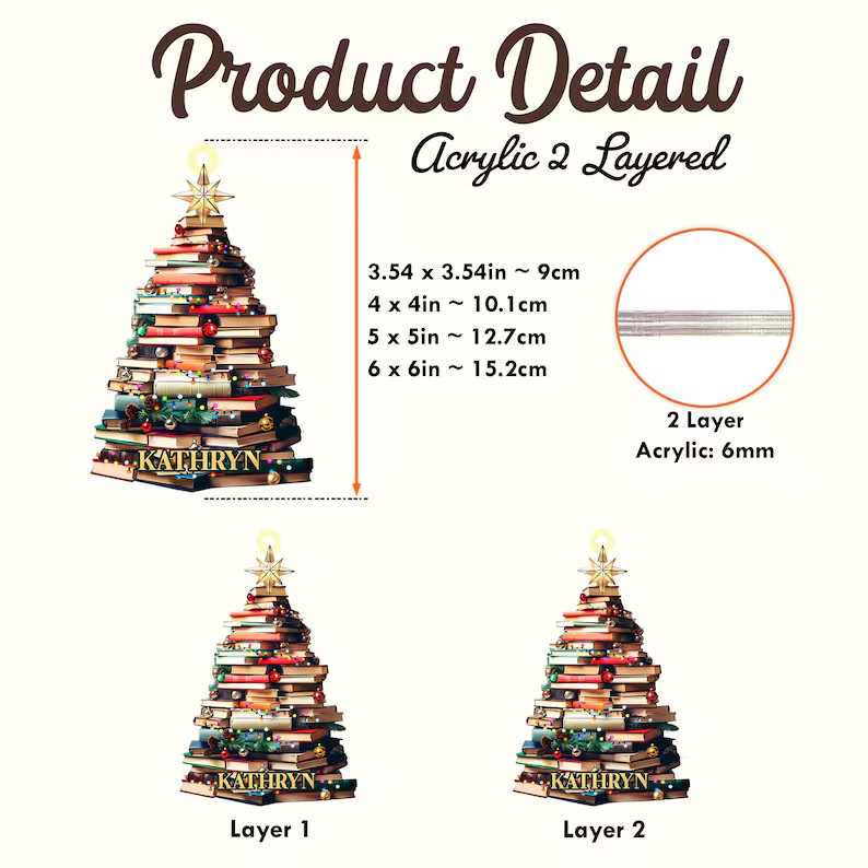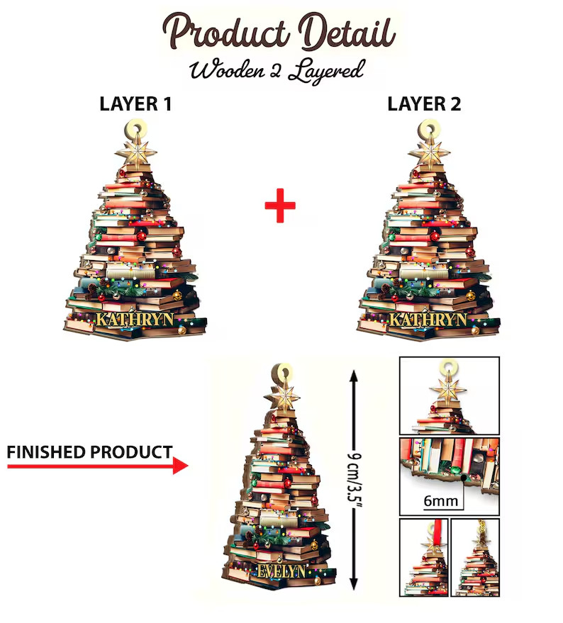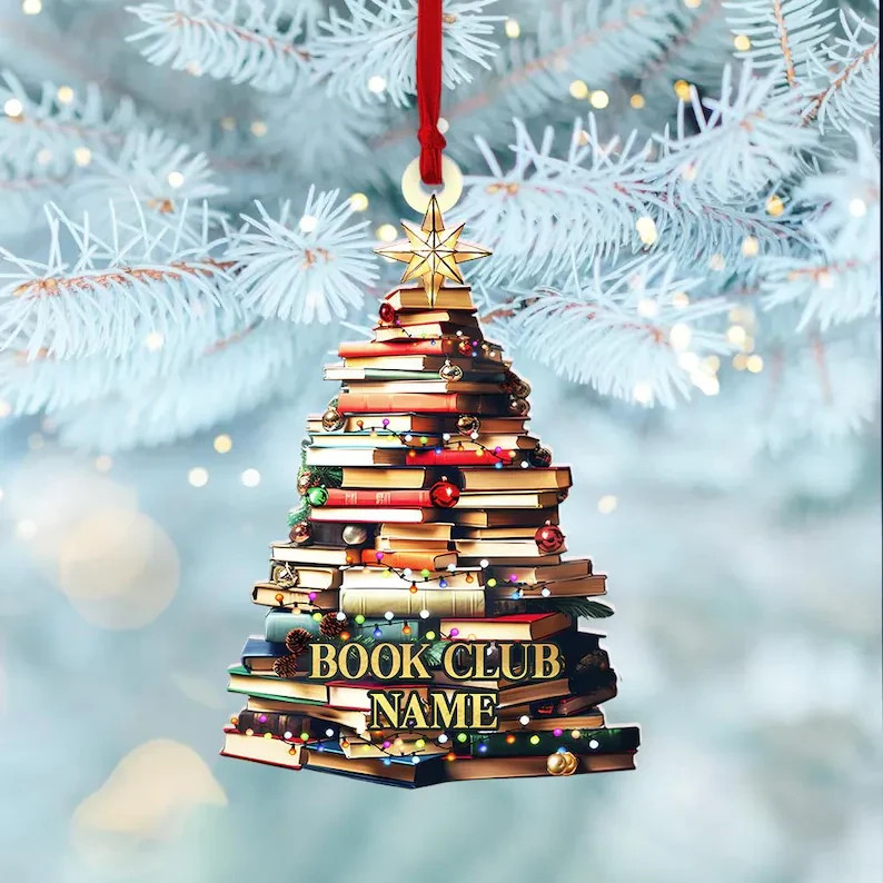 Personalized Christmas Book Tree Name Ornament, Custom Bookish Ornament, Book