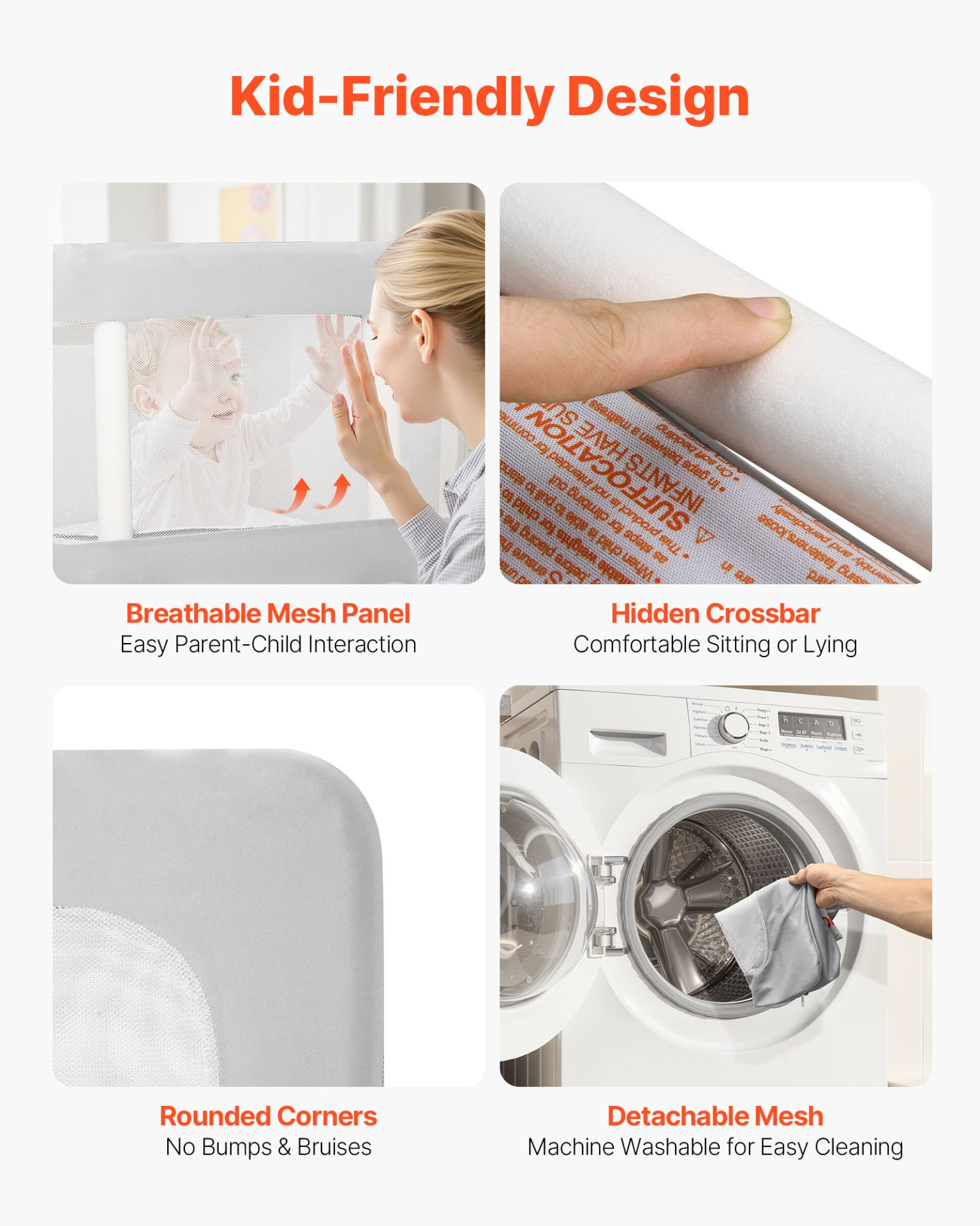 VEVOR Toddler Bed Rail Adjustable Height Safety Guard Rail Grey