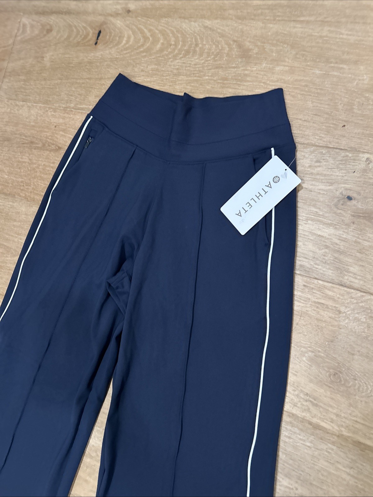 как выглядит NWT Athleta Venice Track Stripe Wide Leg Pant Navy Blue S Small Travel Casual фото