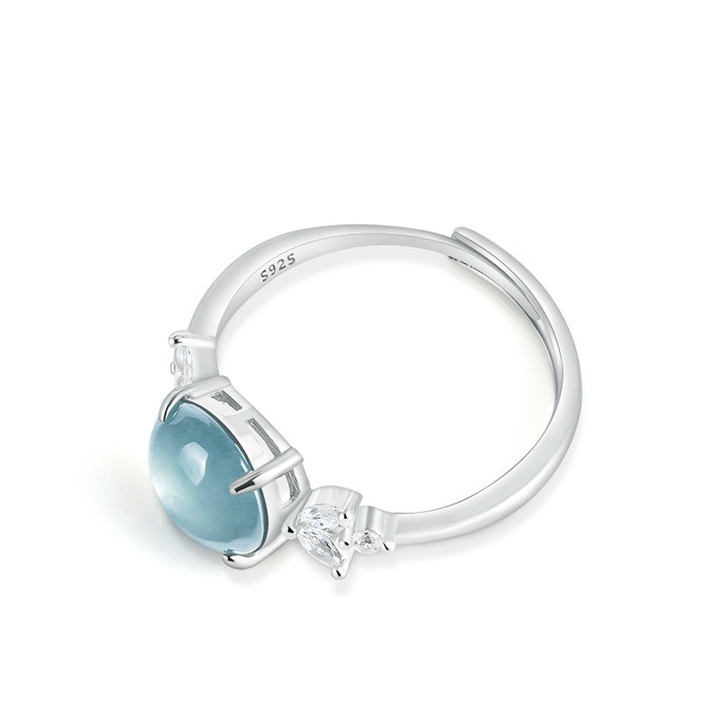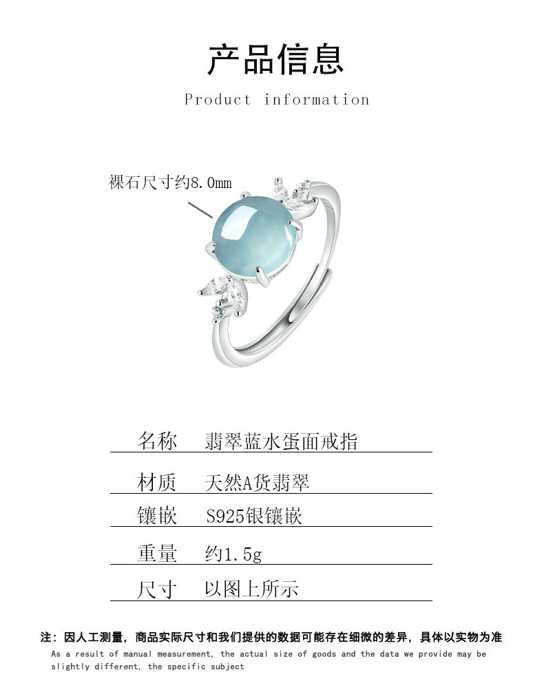 Natural A-grade jadeite blue water egg face ring with adjustable jade ring