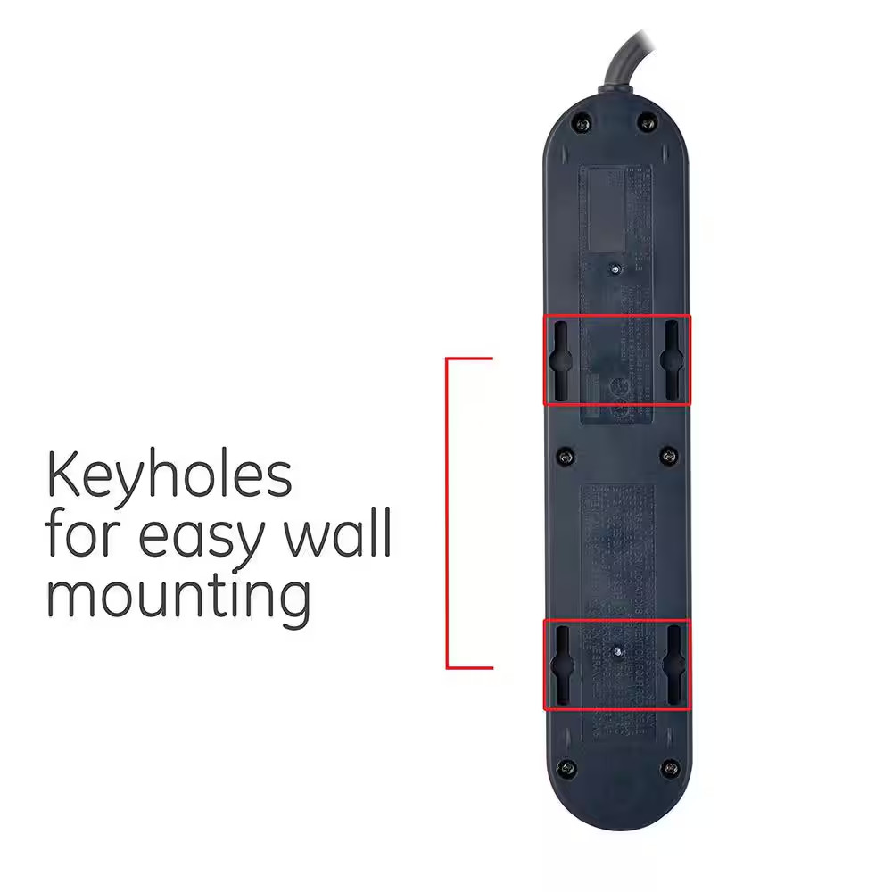 6-Outlet Power Strip with 3 Ft. Extension Cord, Black
