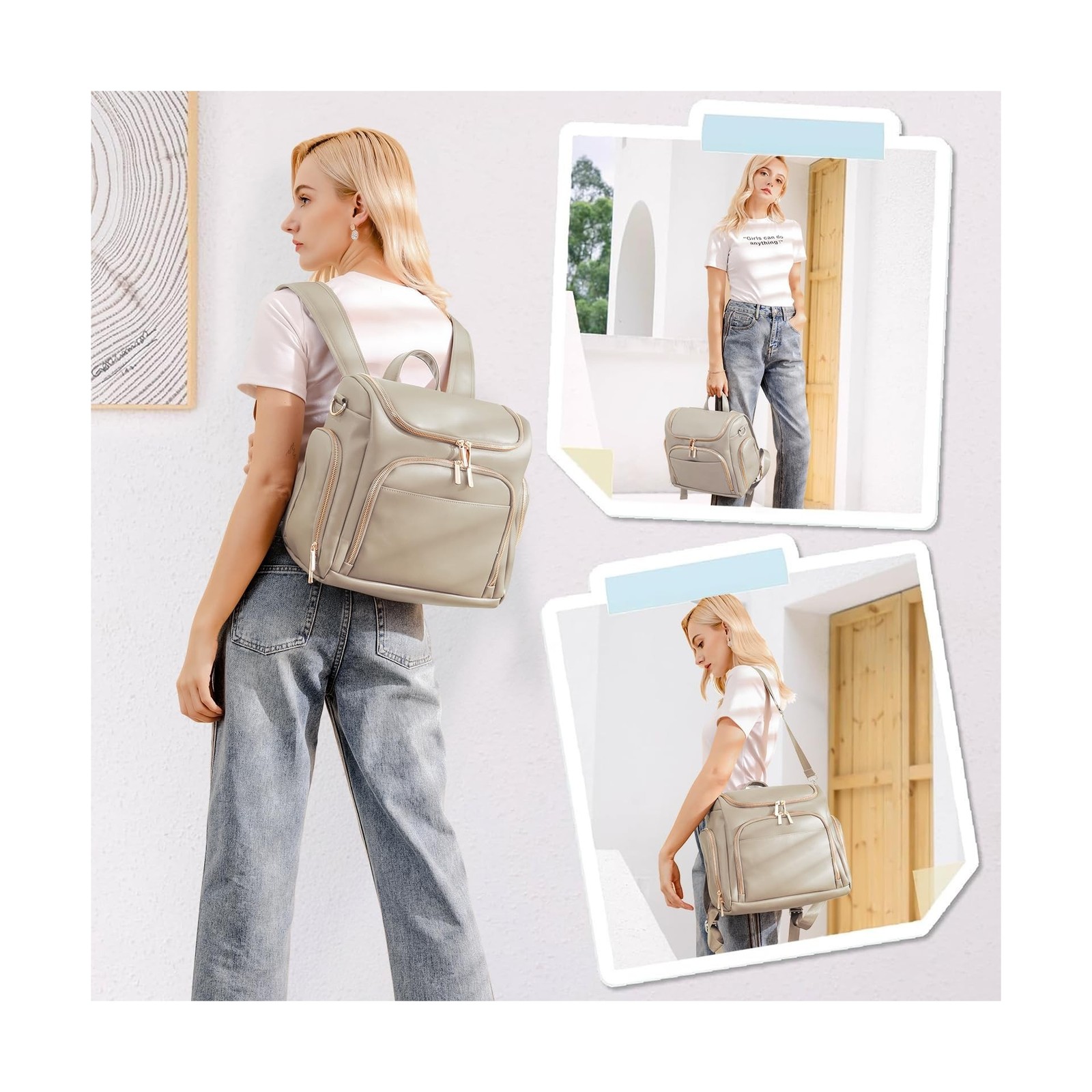 как выглядит Leather Diaper Bag Backpack with Changing Pad - Multi-Function Larg... Fast Ship фото