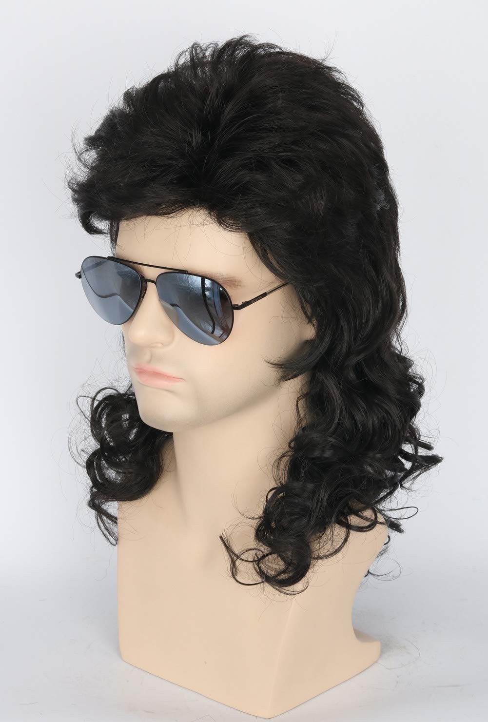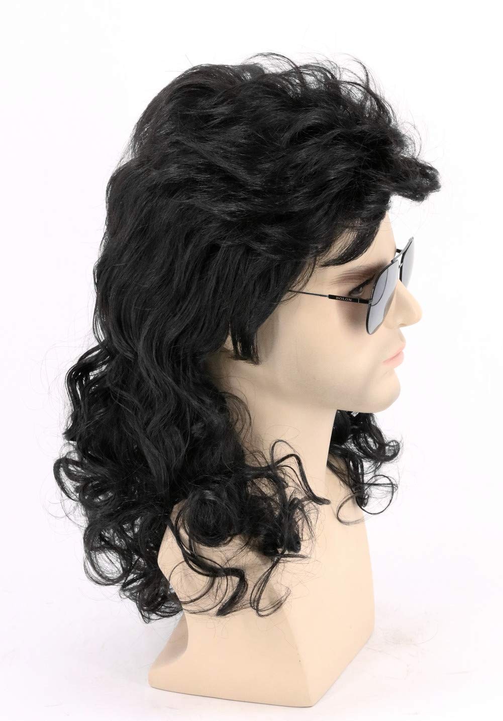 как выглядит Mens 80s Mullet Wig - Black Curly Male Wig for Halloween Costumes, Punk Rock... фото