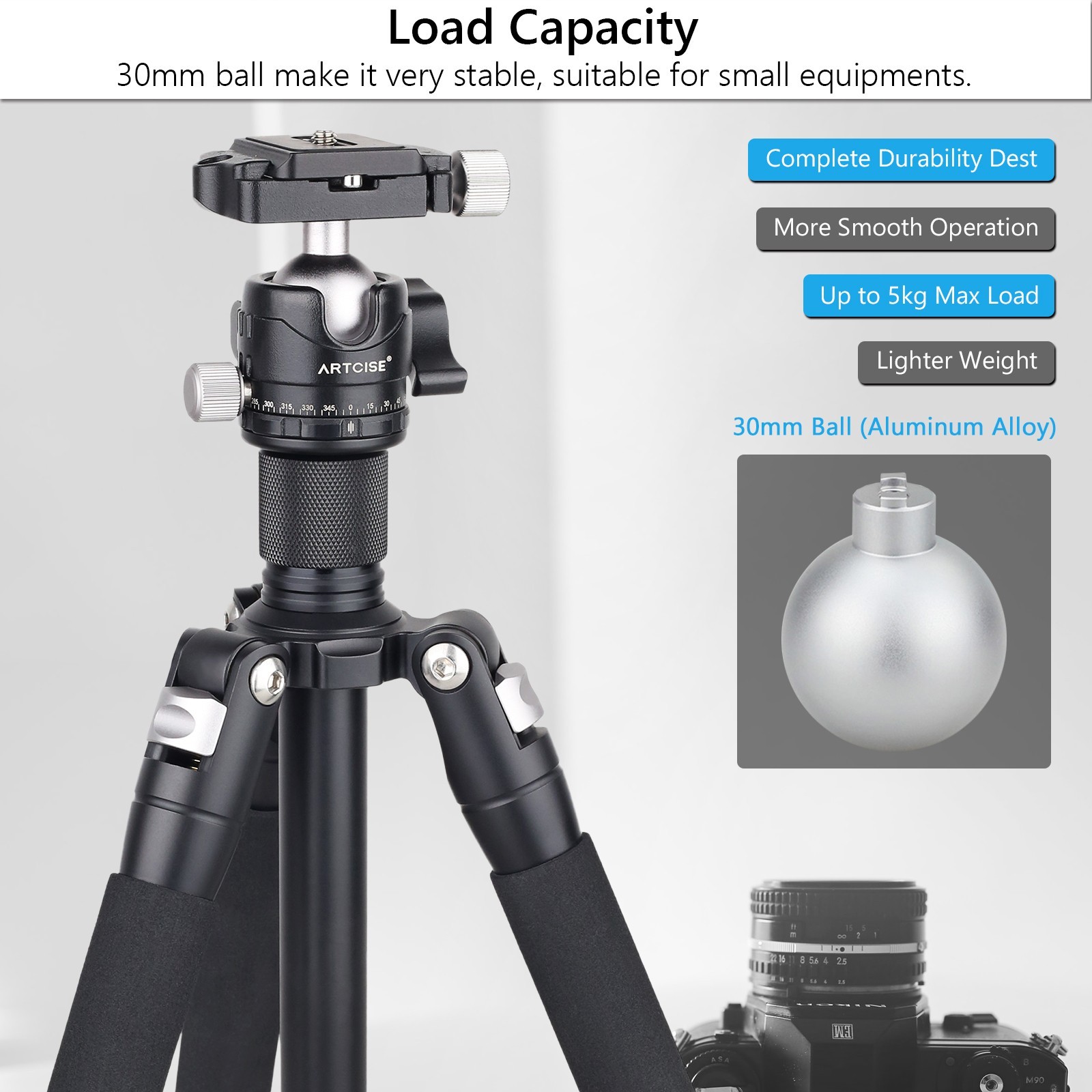 Low Profile Tripod Head,30MM All Metal Ball Head Mini Ball Head Load 22lbs