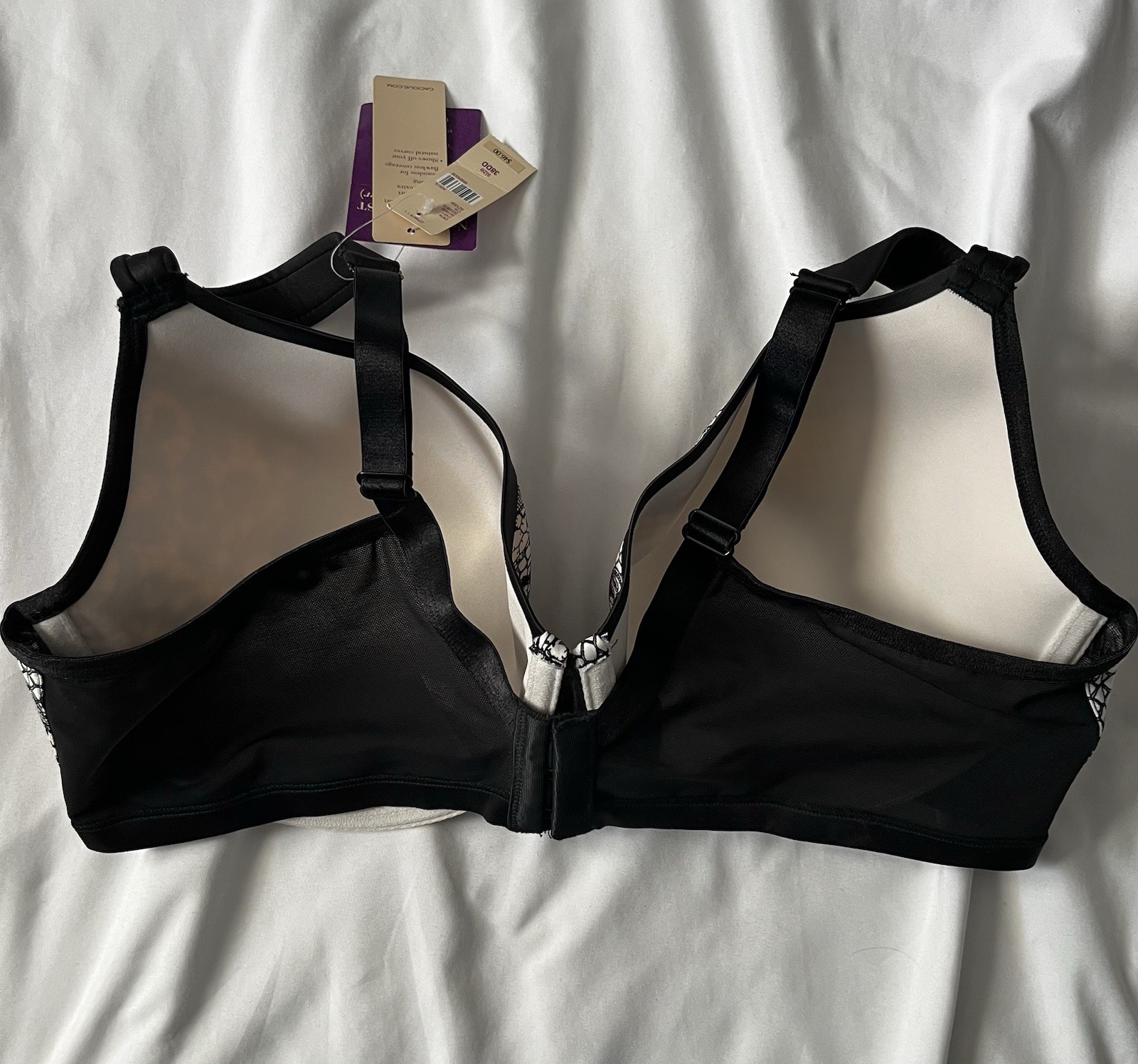 как выглядит Lane Bryant Cacique Bra French Full Coverage Black Floral Paisley Print 38DD фото