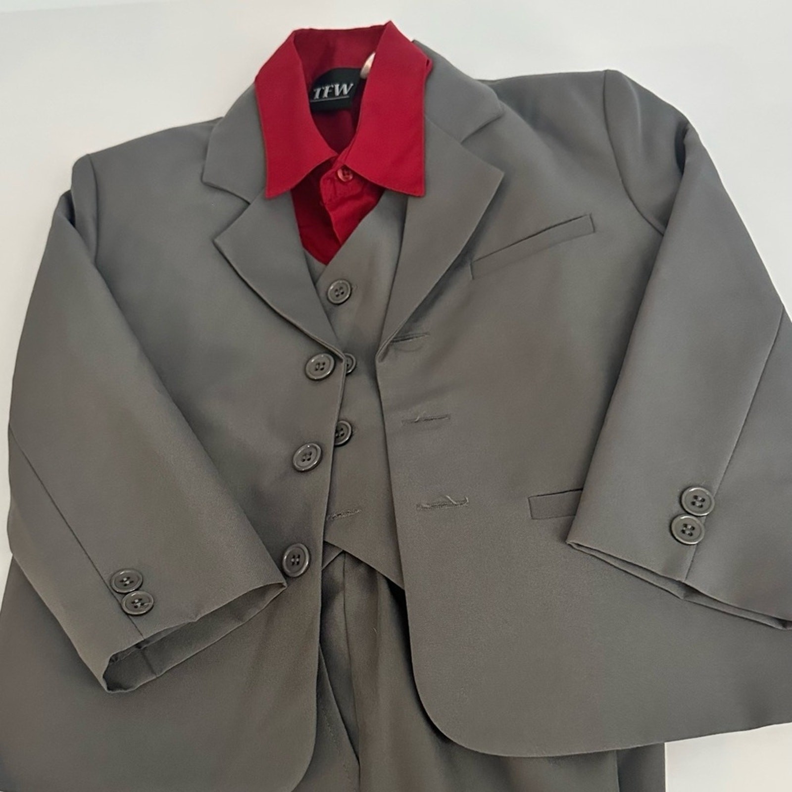 как выглядит Stylish Gray Suit with Red Shirt for Kids фото