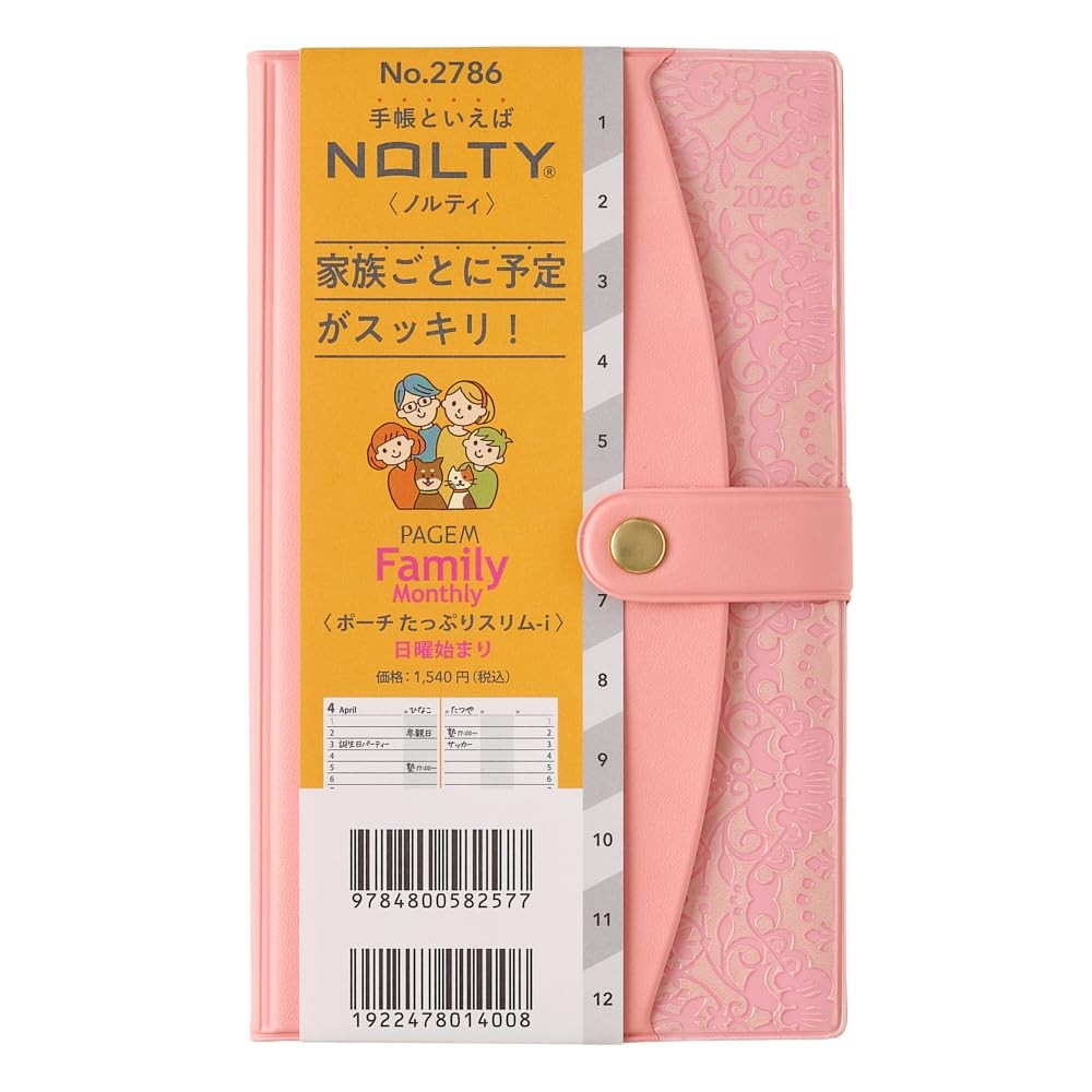 NOLTY Pagem Family Planner 2026 Pouch, Silky Pink