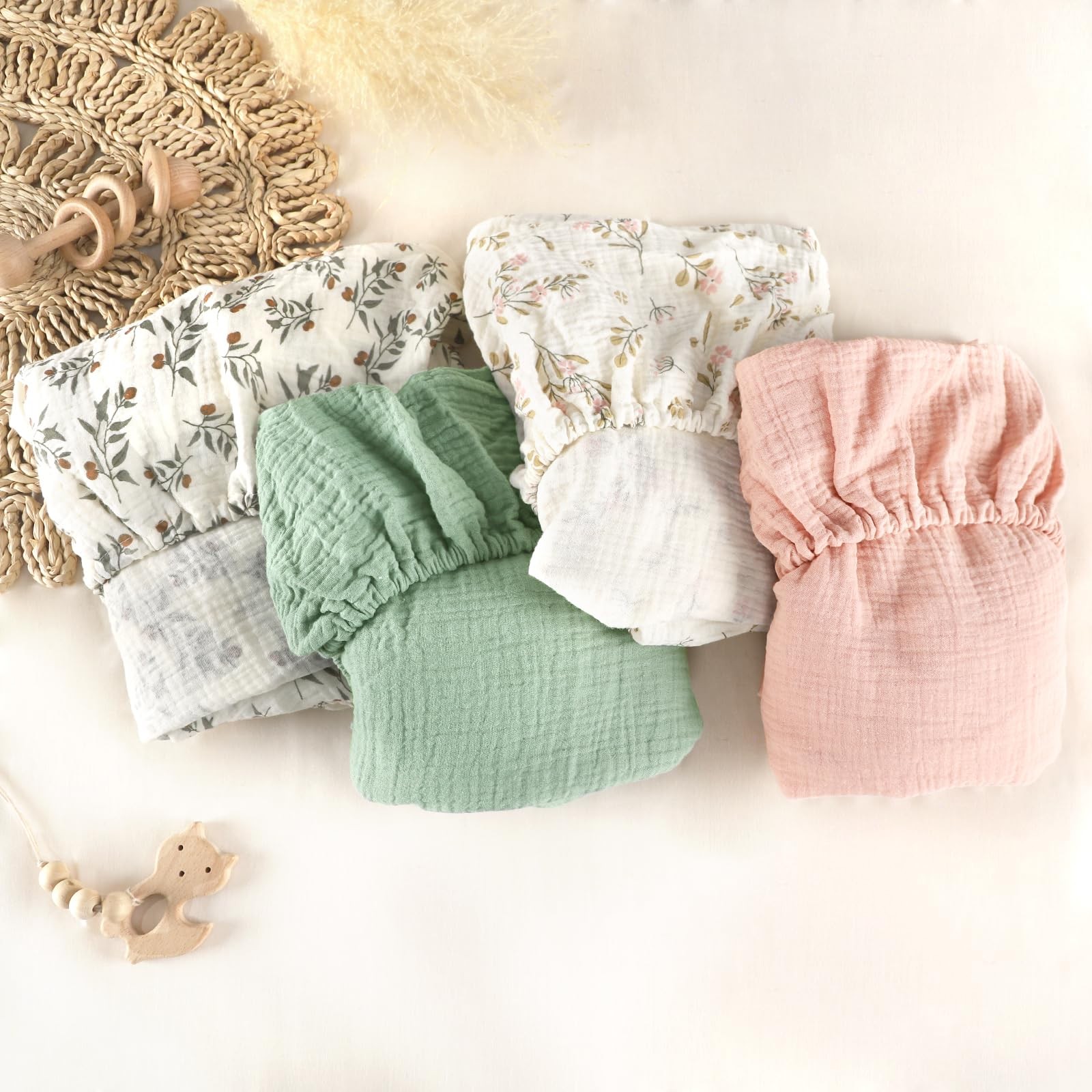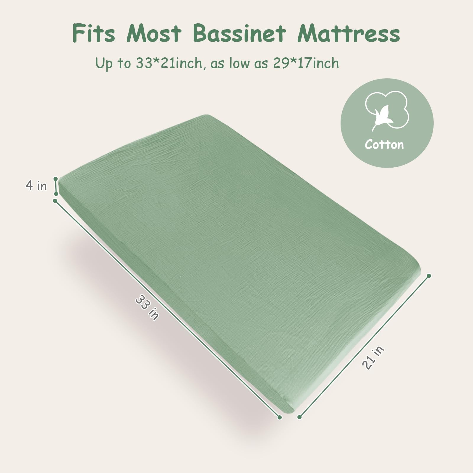 2-Pack Muslin Bassinet Sheets Compatible with Bedside Sleeper Green Leaf
