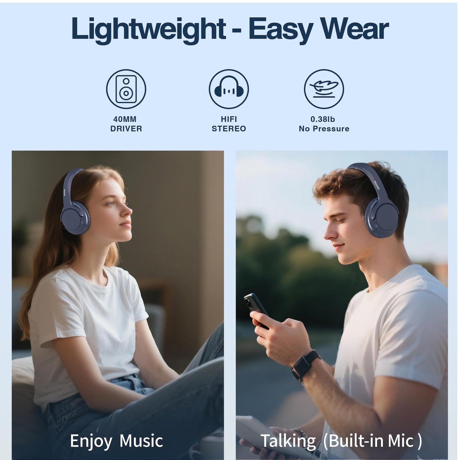 Bluetooth Headphones Over Ear 68H Playtime 6 EQ Wireless Headset with Microph...
