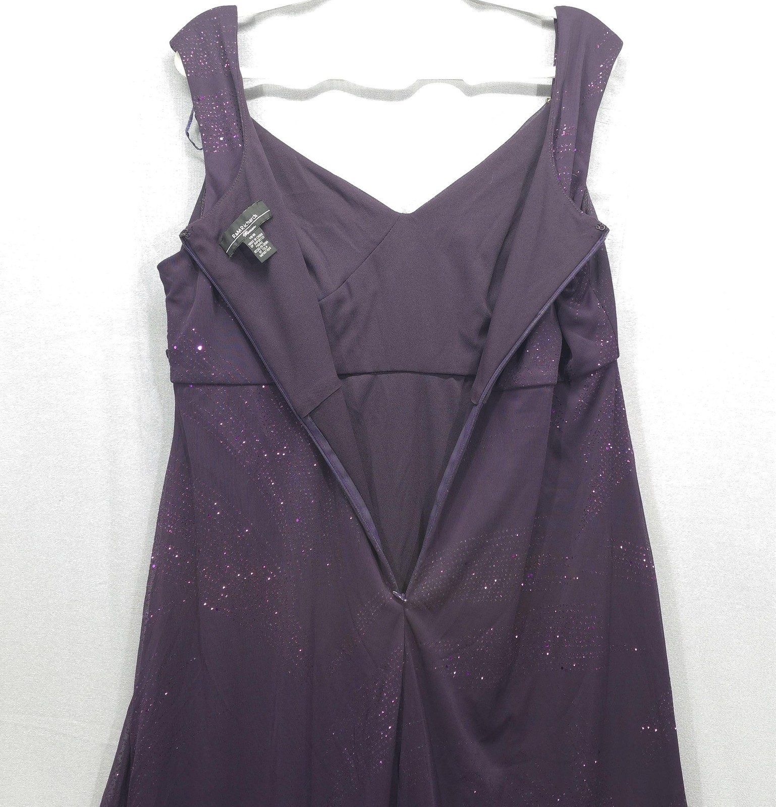 R M Richards Dress Women16W Sleeveless Glitter Purple Drape Gown Evening Festive
