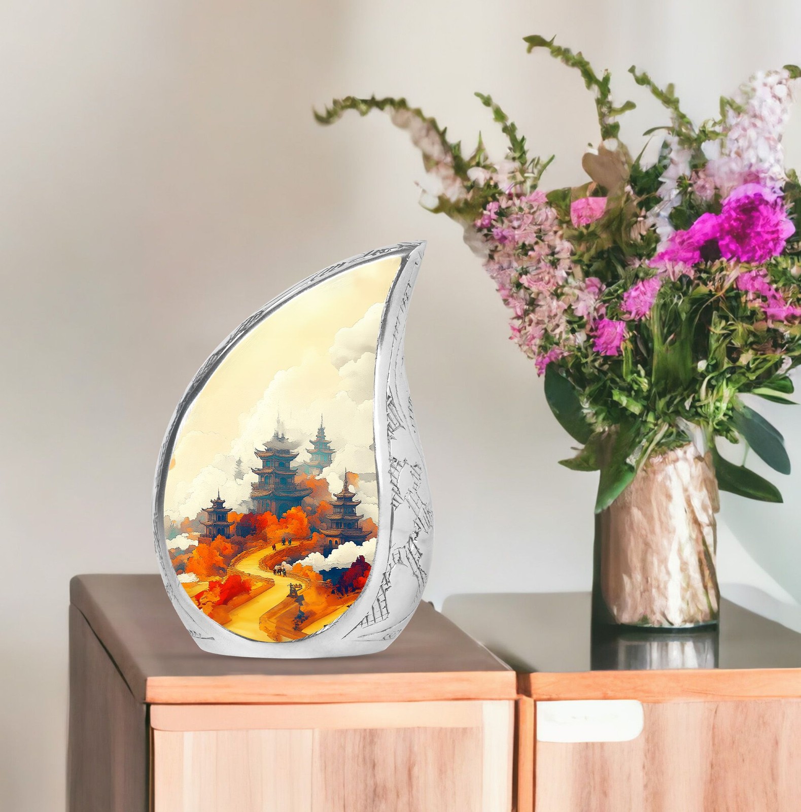 • Chinese Scenery Urns for Human Ashes Adult Men Women 10 Inch