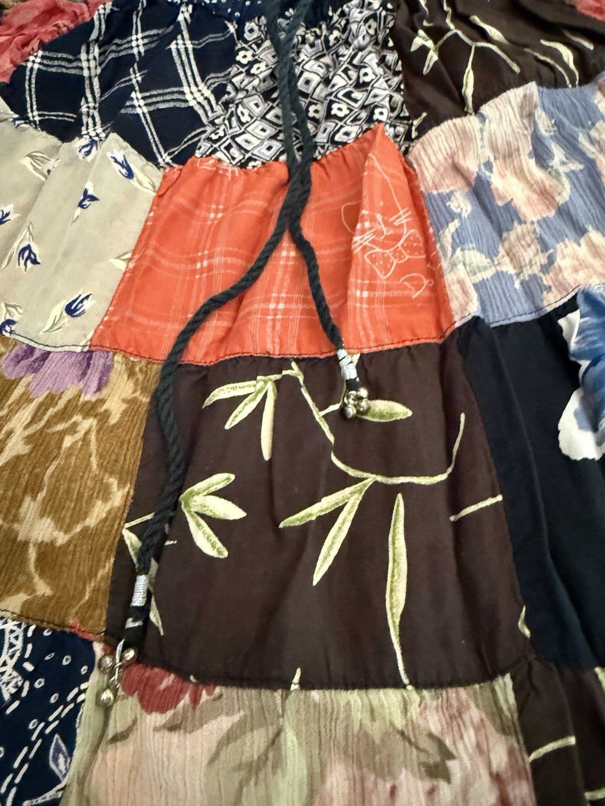как выглядит Vintage Patchwork Boho Hippie Long Skirt Drawstring Cotton Rayon One Size India фото
