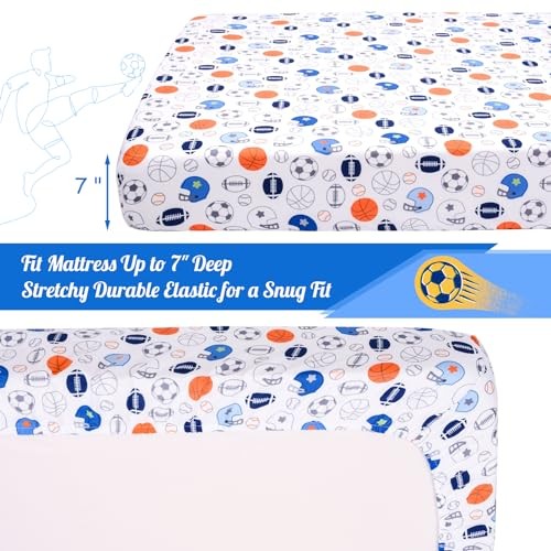 Crib Sheet - 1 Pack Sports Theme Nursery Bedding 52x28 Inch Cr Male Sports