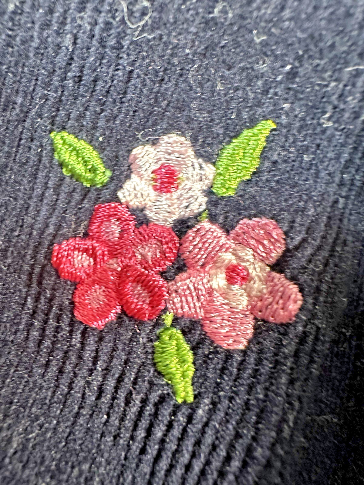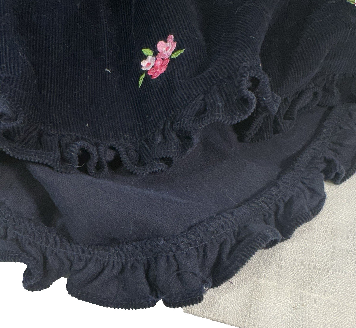 Girls Navy Corduroy Jumper Sz 5 Embroidered Pink Flowers Ruffle Hem Heart Accent