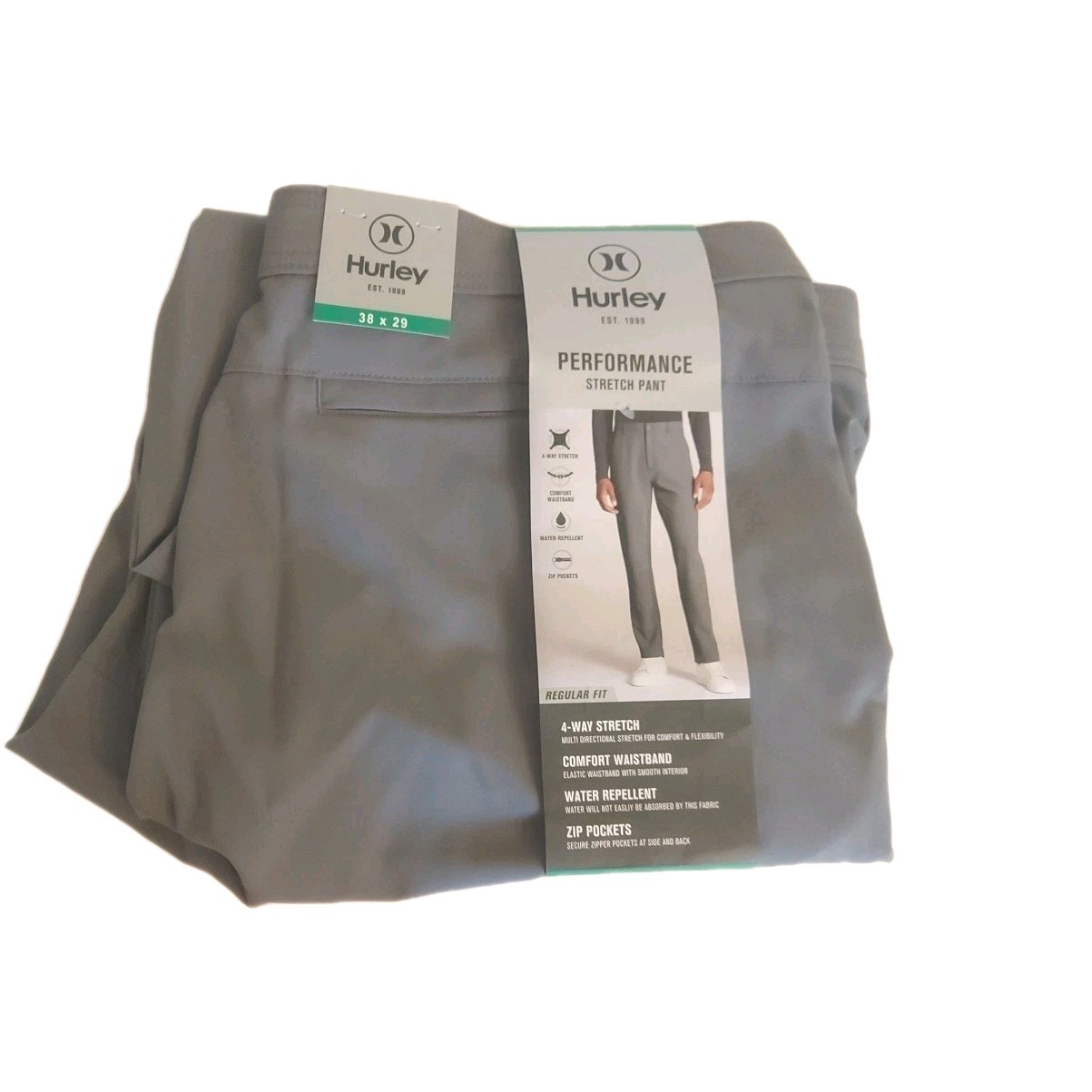 Hurley Mens Performance Stretch Pants 39 29, 4-Way Stretch Water Repellent Zip P