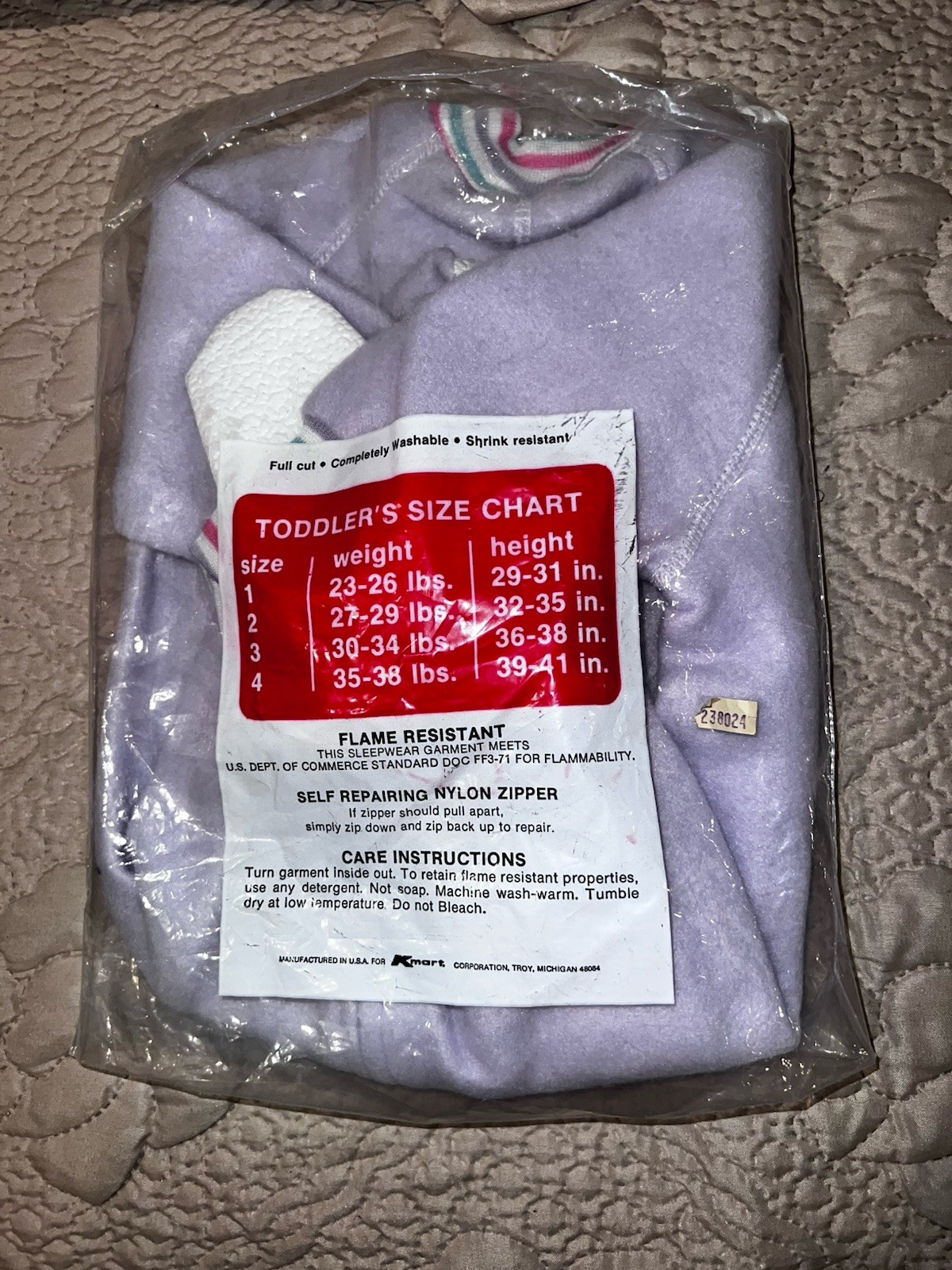 Vintage Toddler Blanket Sleeper Size 1 Lavender NEW