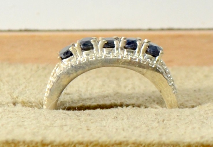 как выглядит BLACK SAPPHIRE OVALS - 5-STONE BAND RING - SIZE 7 - STERLING SILVER фото