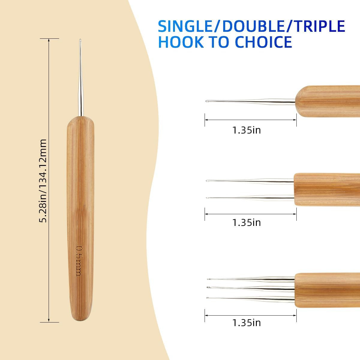 3-Pack Dreadlock Crochet Hooks 0.5mm Hair Loc Braid Tool