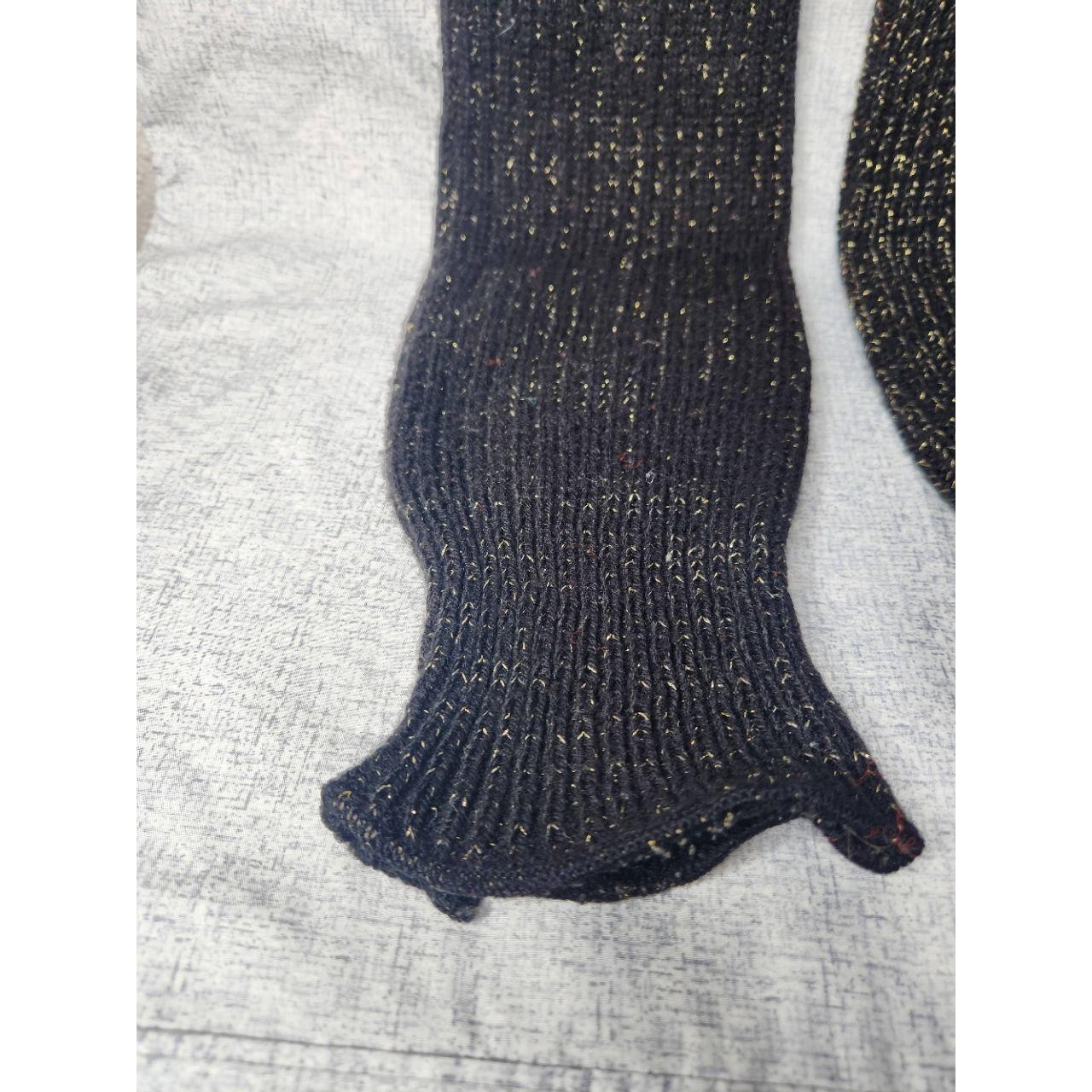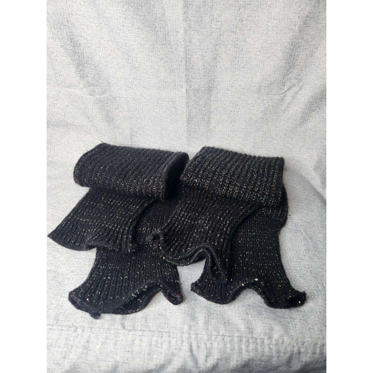 как выглядит Vintage Leg Warmers Black and Gold Knit Ruffle at Both Ends Retro Cozy фото