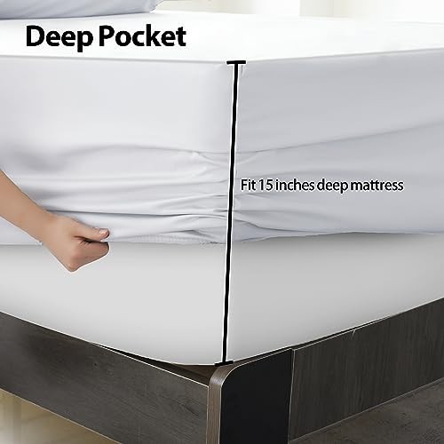 King Size Fitted Sheet Only White, 100 Egyptian Cotton 600 Thread Count, 16 De