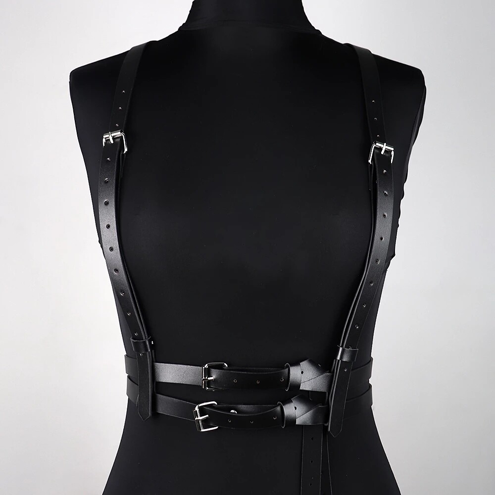 как выглядит Women Waist Belt Adjustable Strap Body Harness Punk Faux Leather Retro Corset US фото
