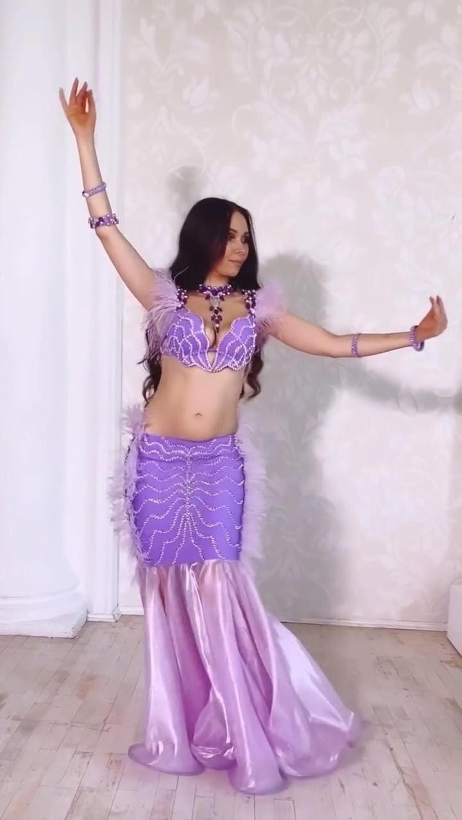 Made to Order Purple Rhinestone Belly Dance Costume: Couture Performance Dress