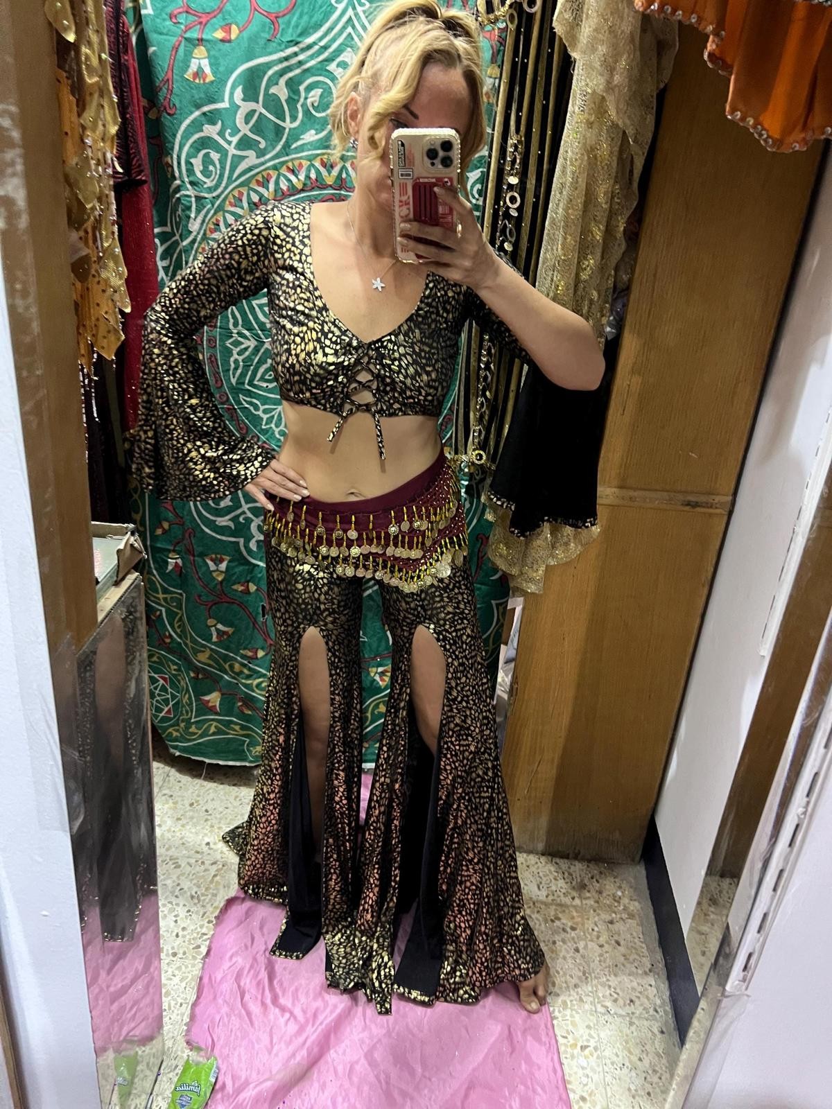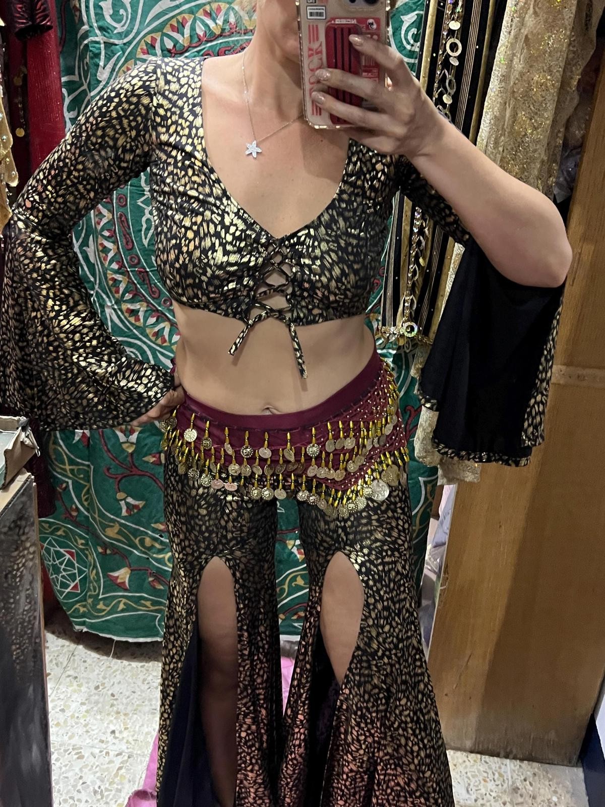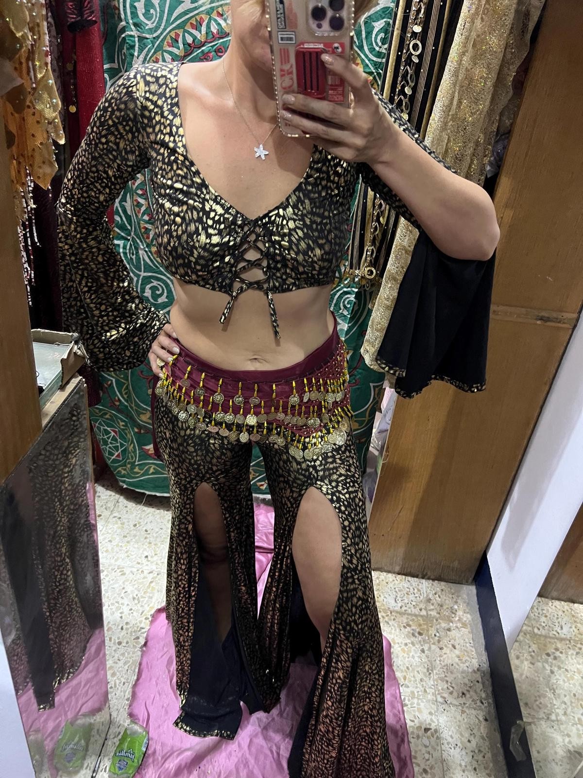 как выглядит Italian Lycra Belly Dance Costume: Top, Pants Belt - Size S-M фото