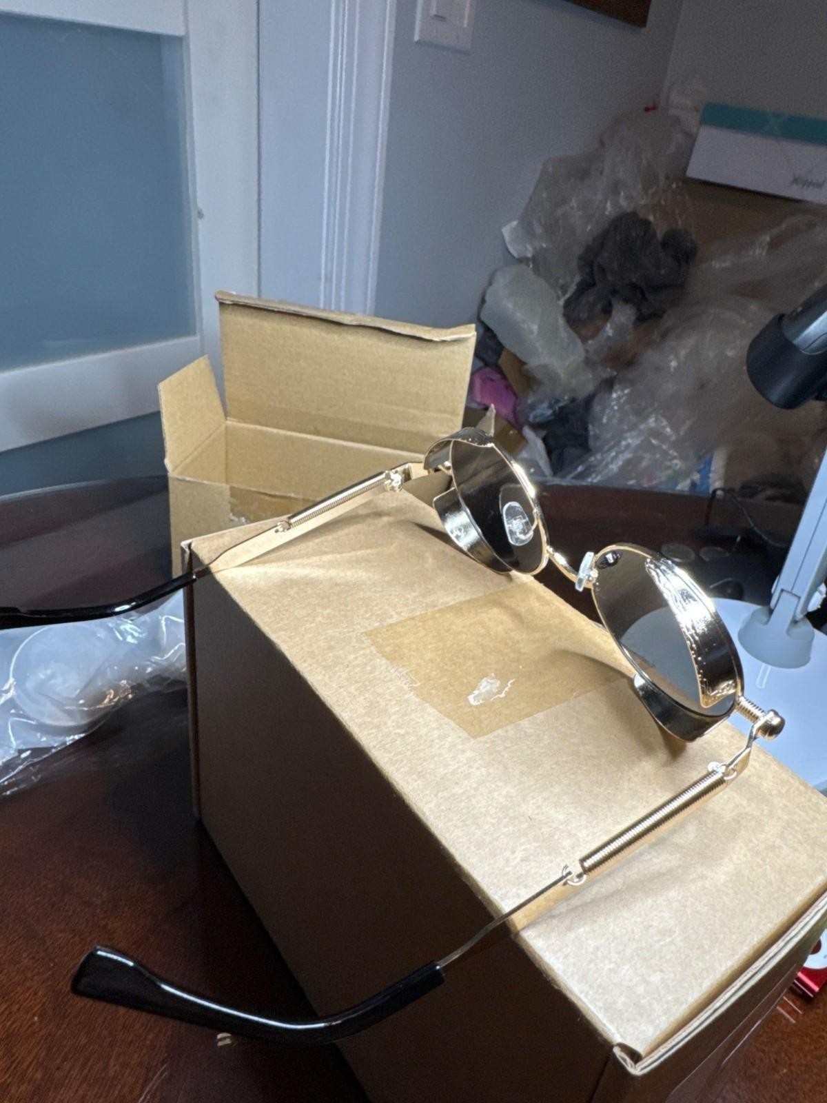 как выглядит Gold Frame Oval Steampunk Sunglasses Spring Arms/Black Temple Men/Women 46-70 фото