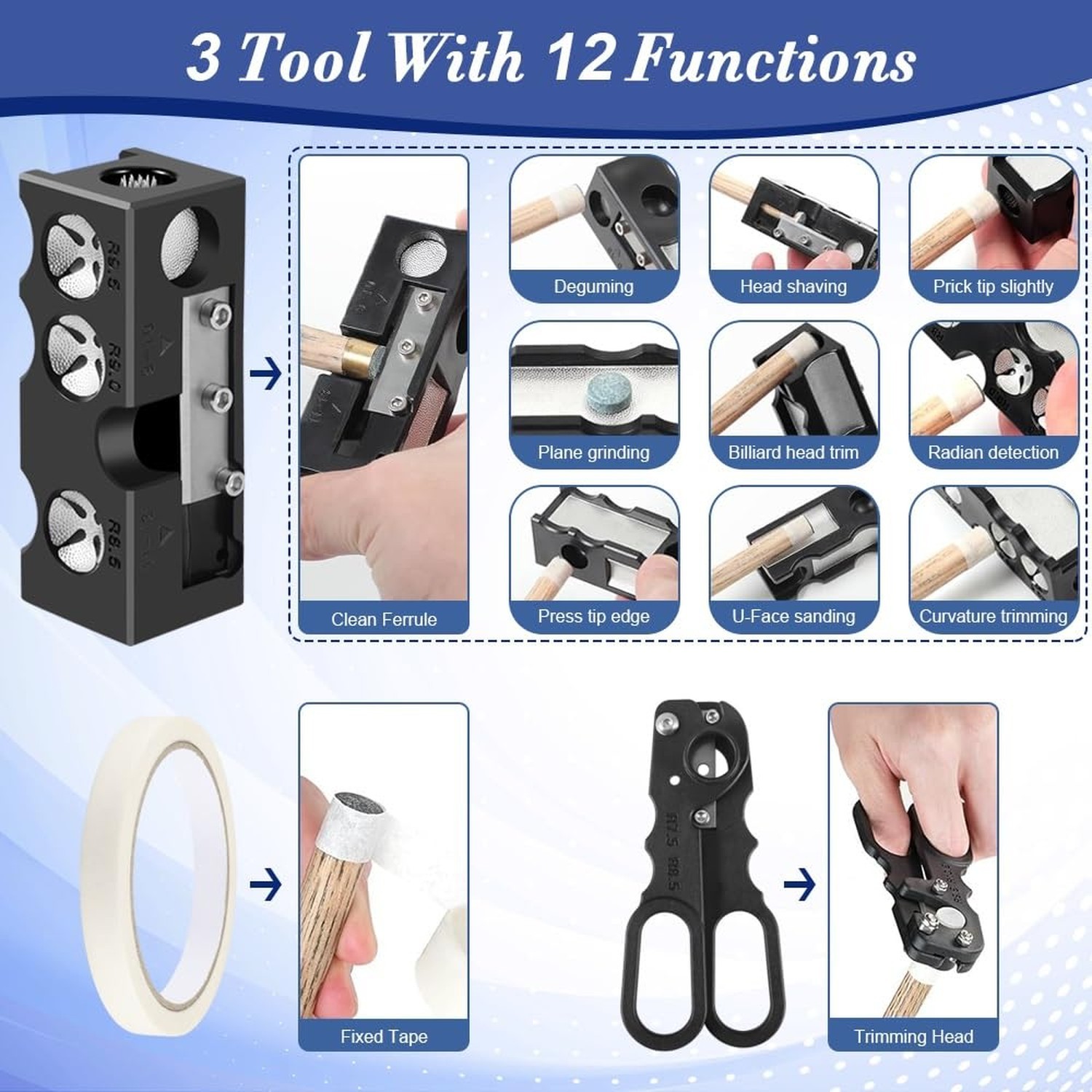 11-in-1 Billiards Pool Cue Tips Shaper, Pool Cue Tips Replacement Kit, Profes...