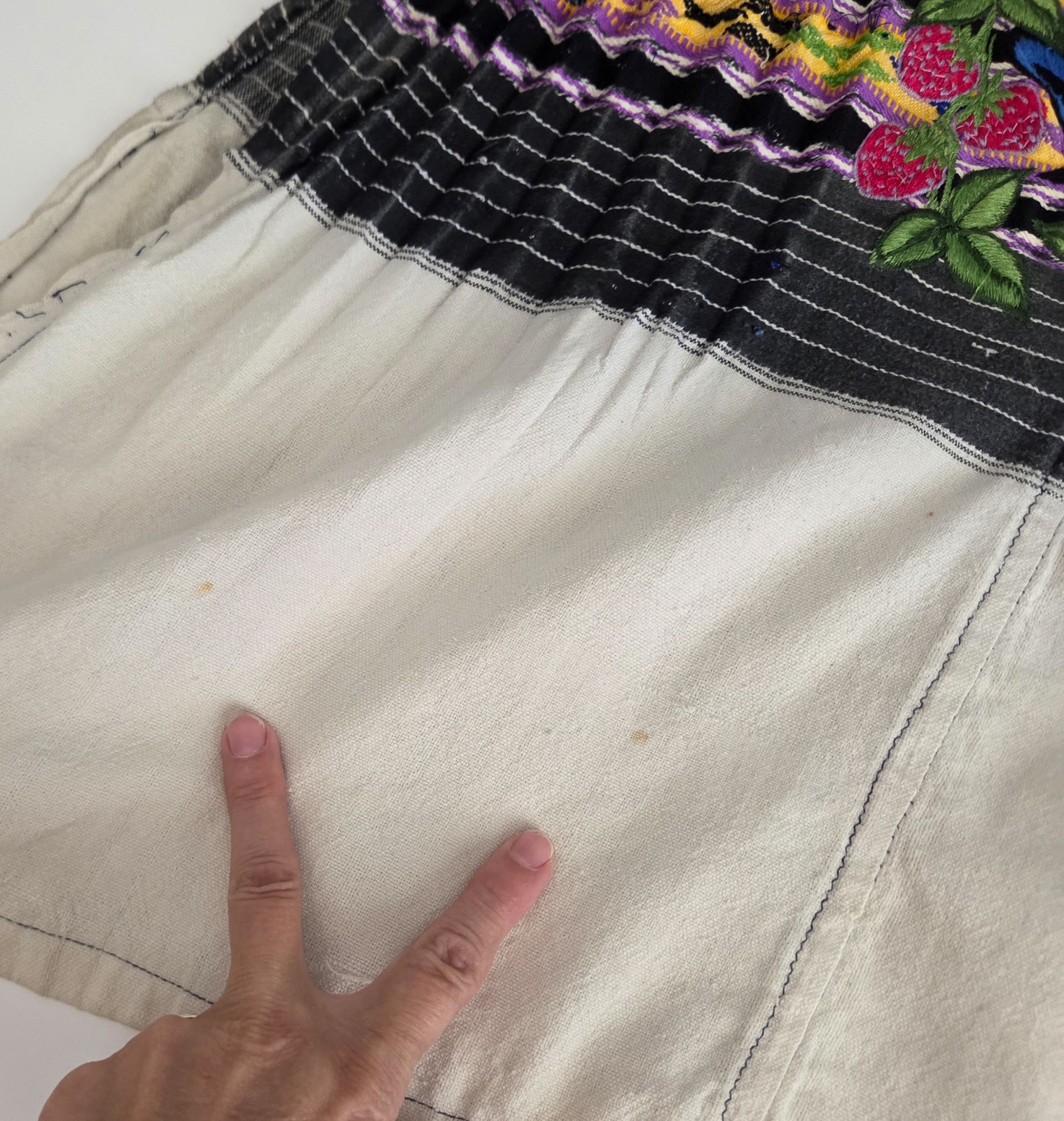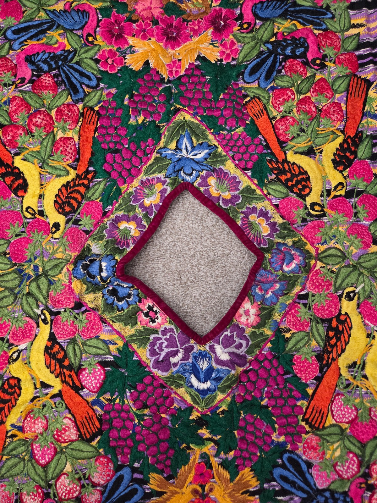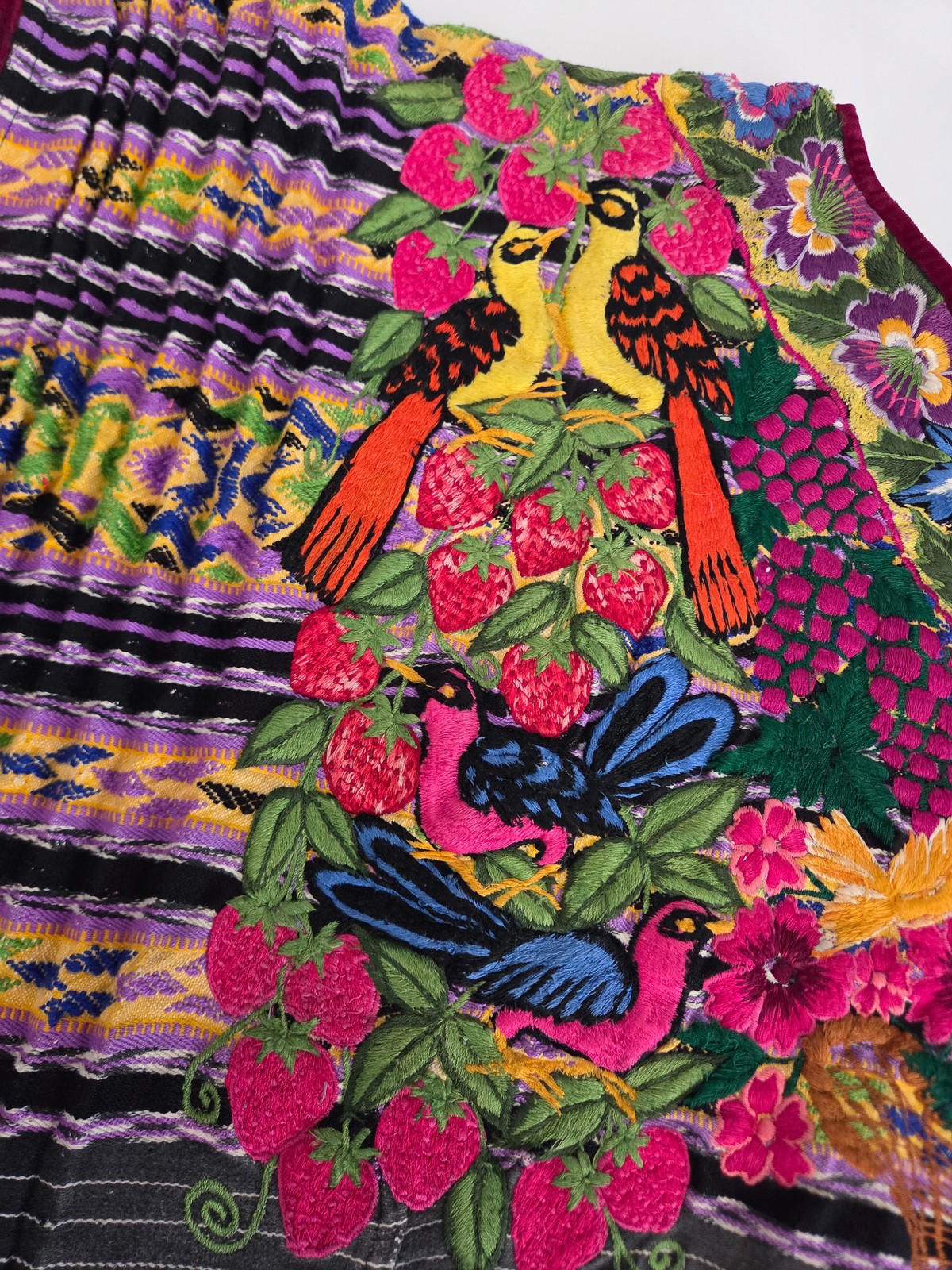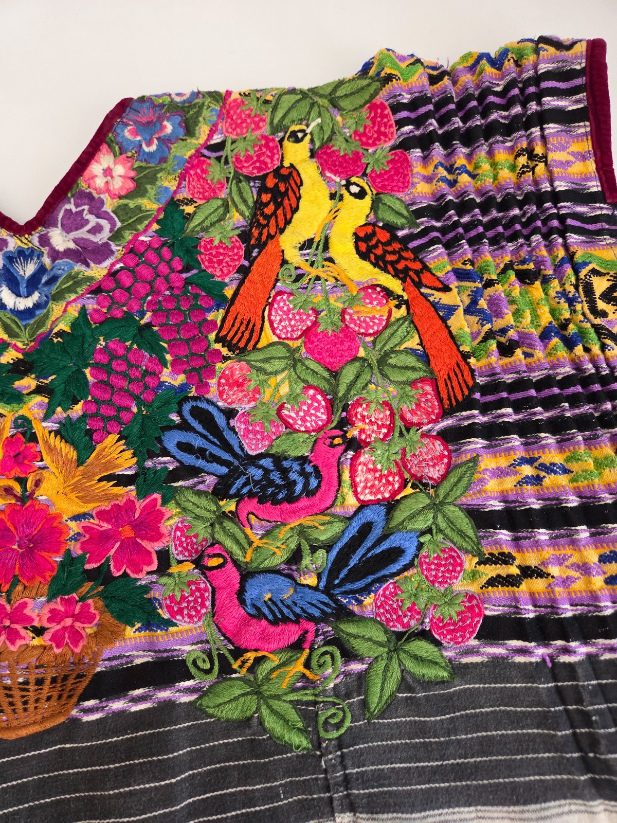 Vintage Handwoven Huipil Guatemala Hand Embroidered Poncho Blouse Floral Birds