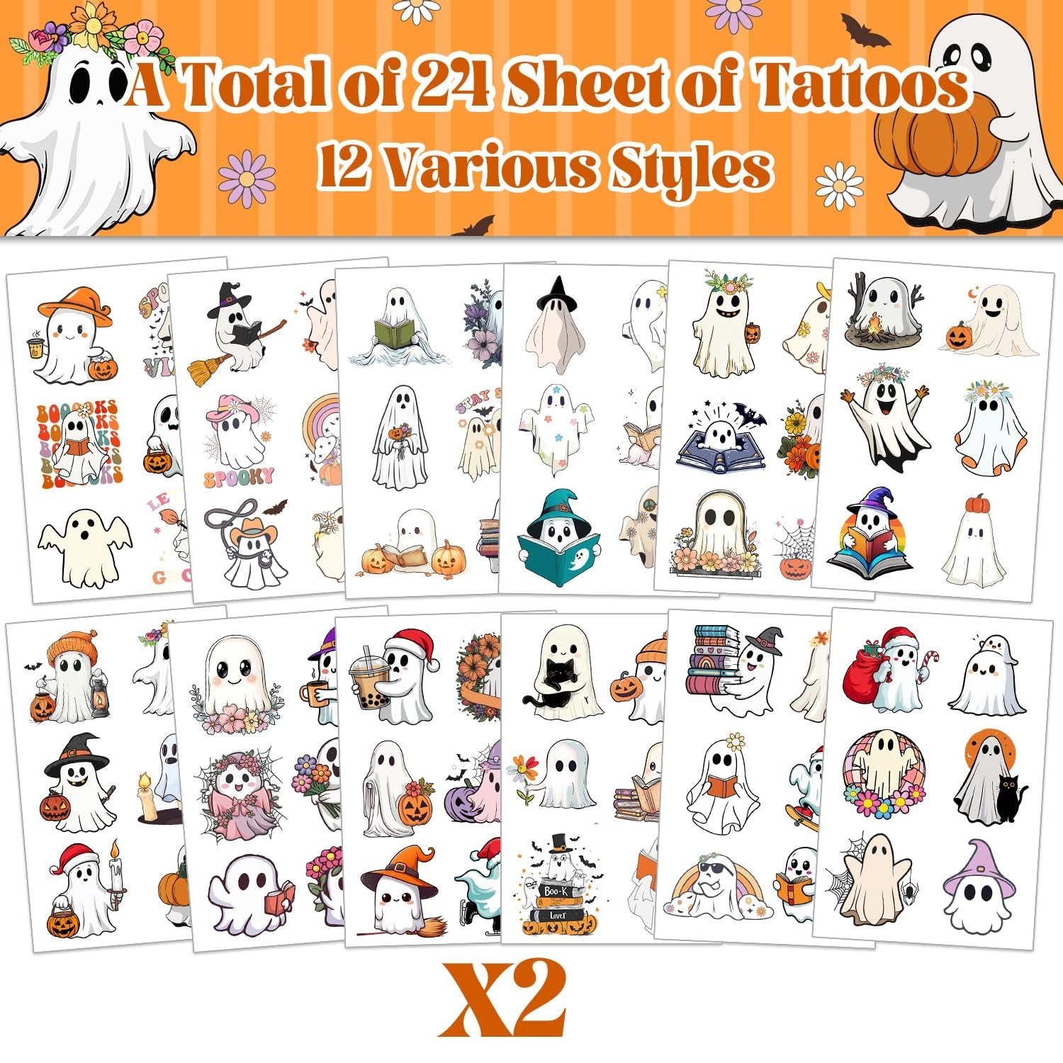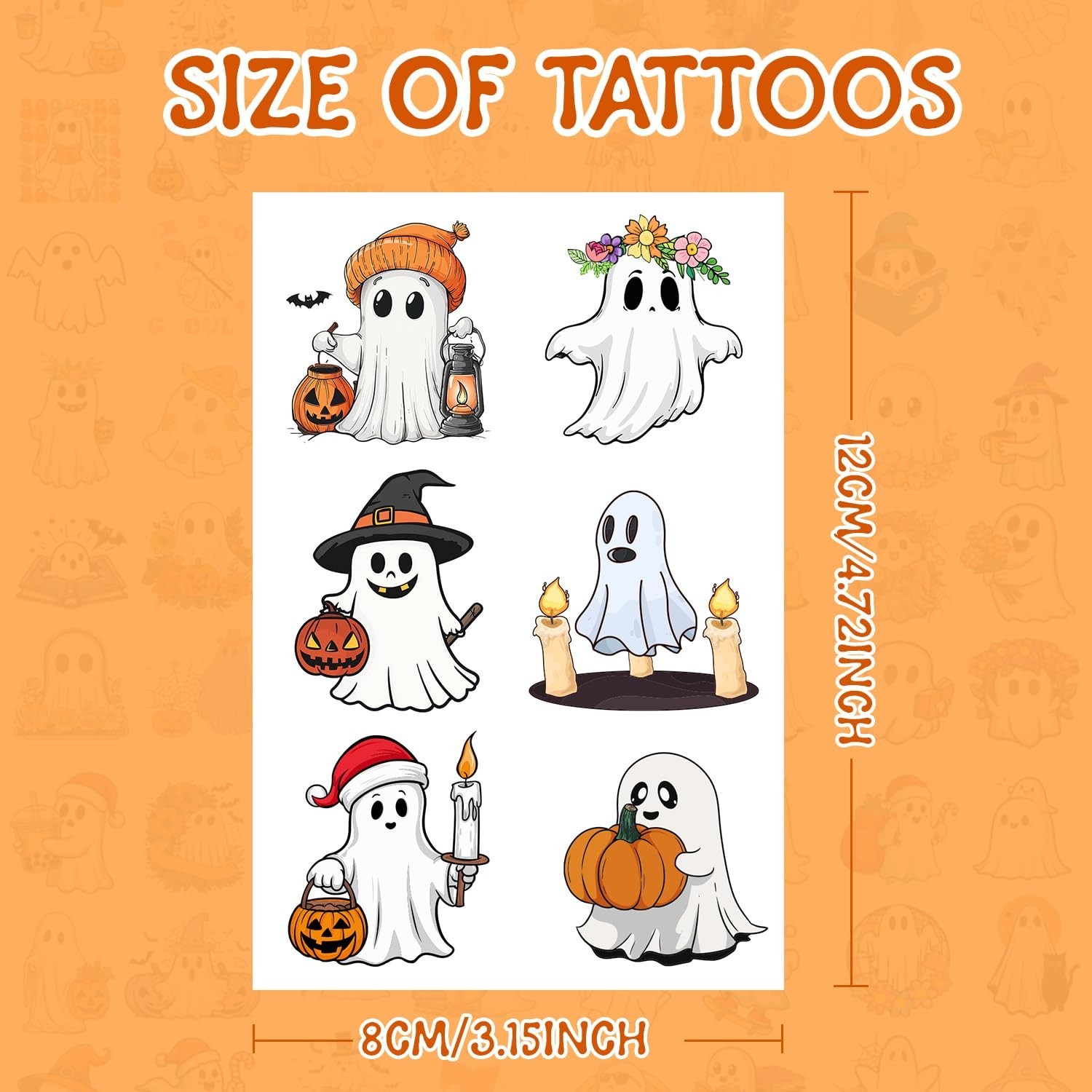 144 PCS Cute Halloween Ghost Temporary Tattoos Stickers, Halloween Ghost Part...