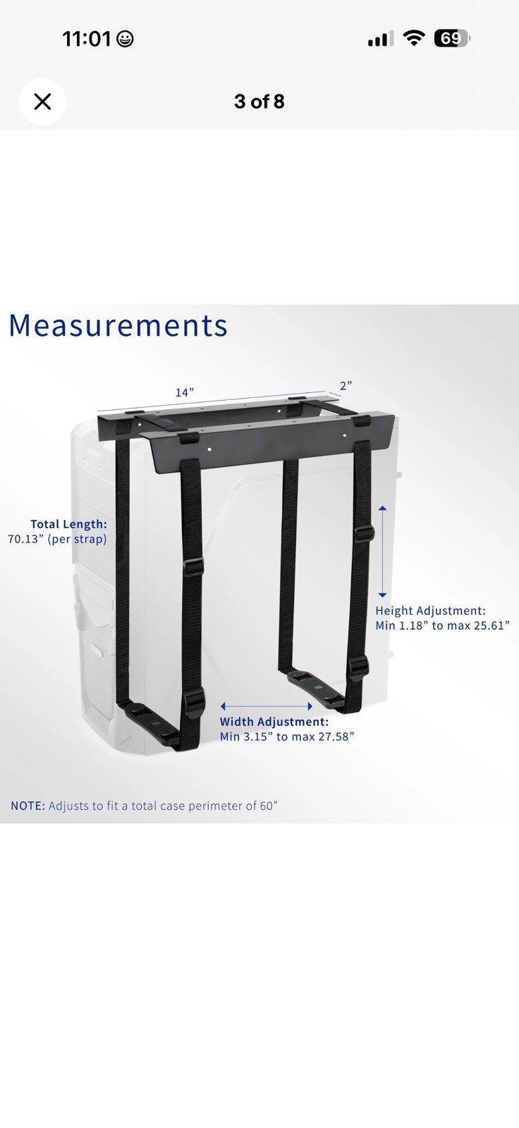 как выглядит VIVO Black Under-Desk PC Adjustable Strap Mount Computer Case Holder фото