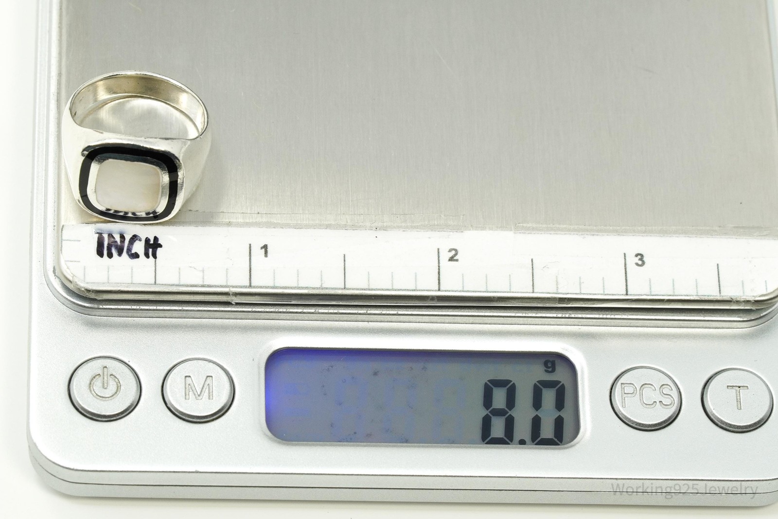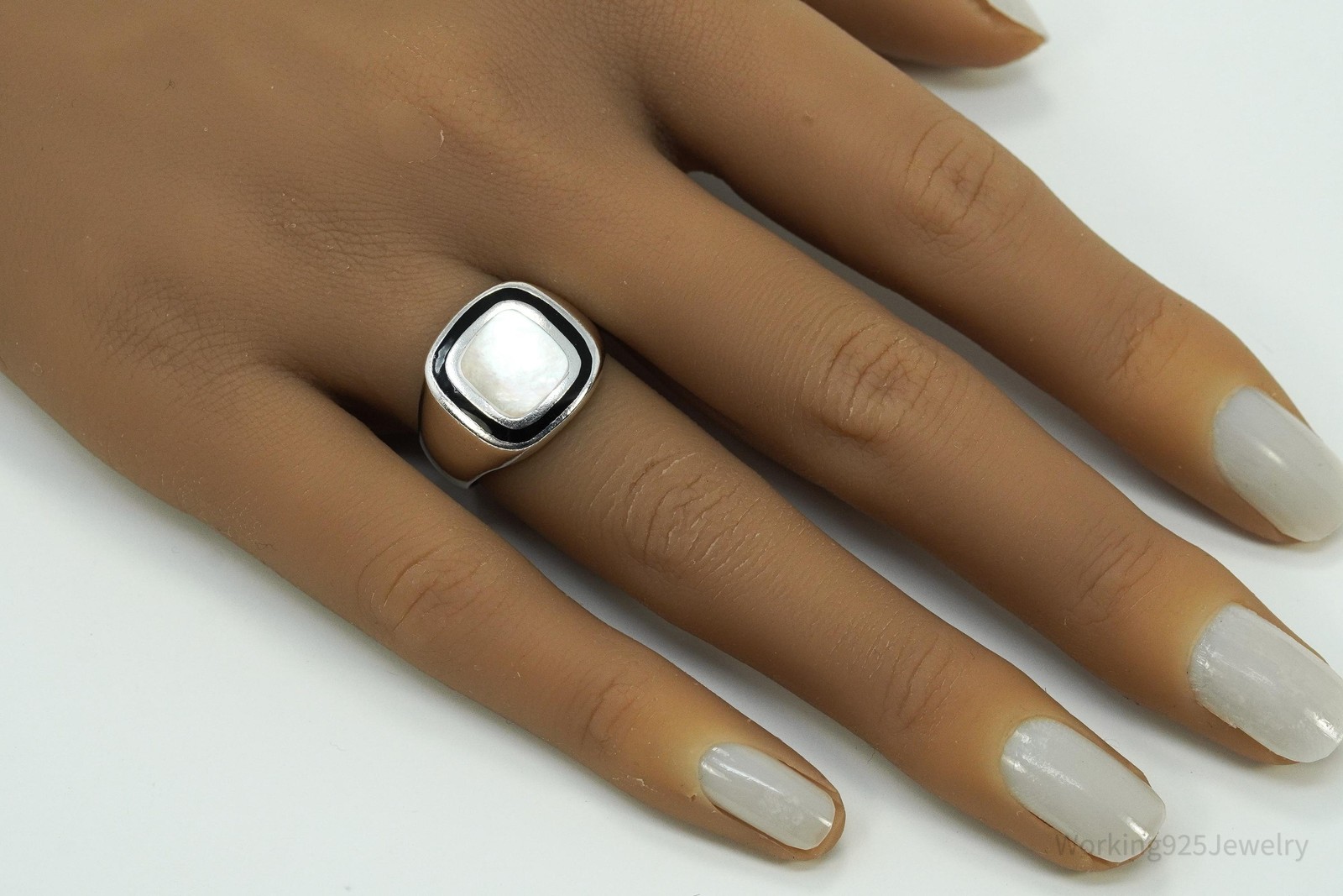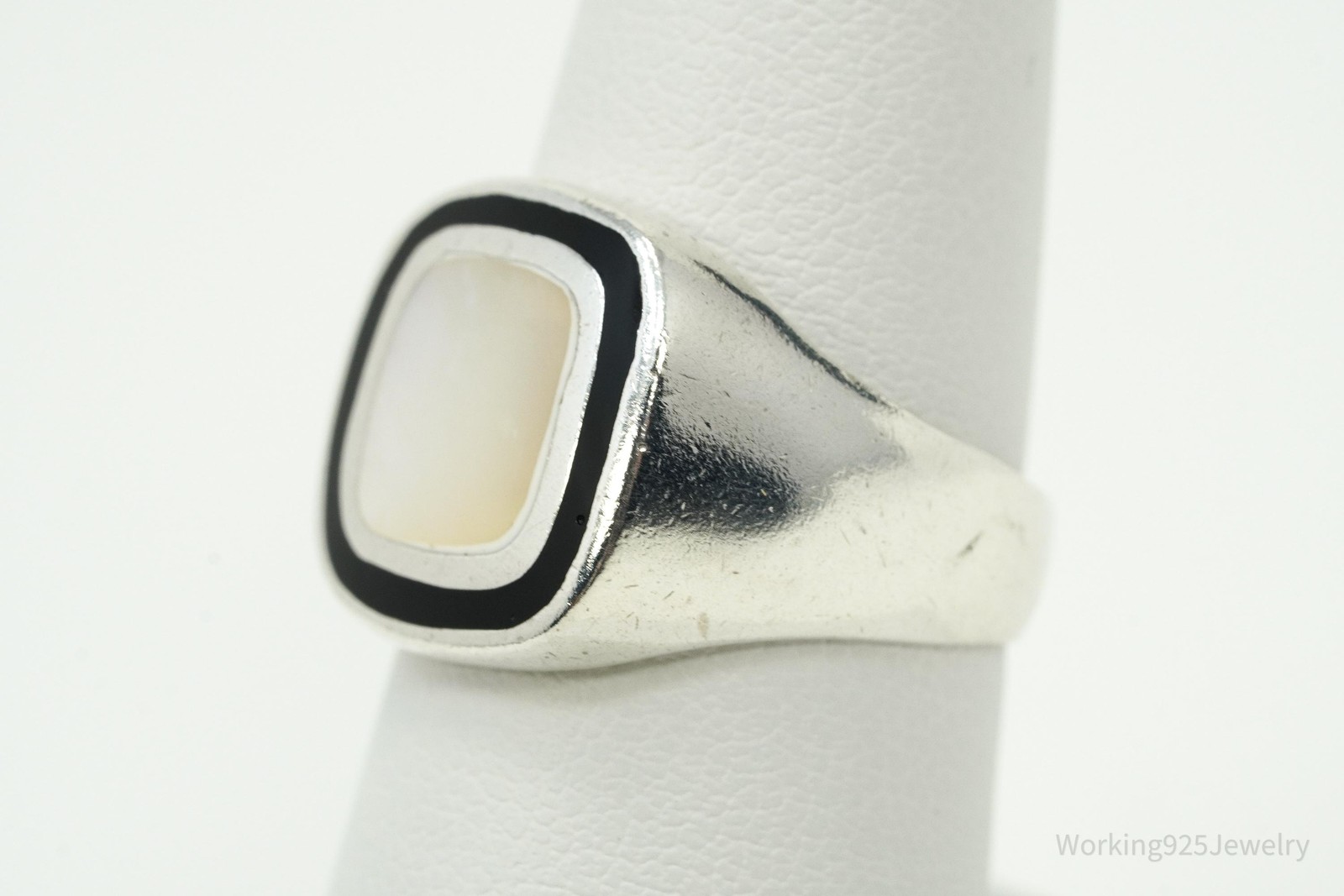 как выглядит Vintage Mother Of Pearl Black Onyx Sterling Silver Ring - Size 7.25 фото
