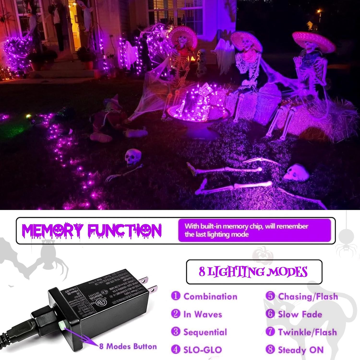 Purple Extra-Long 66FT 200 LED Halloween Lights for Indoor/Outdoor, Super Bright