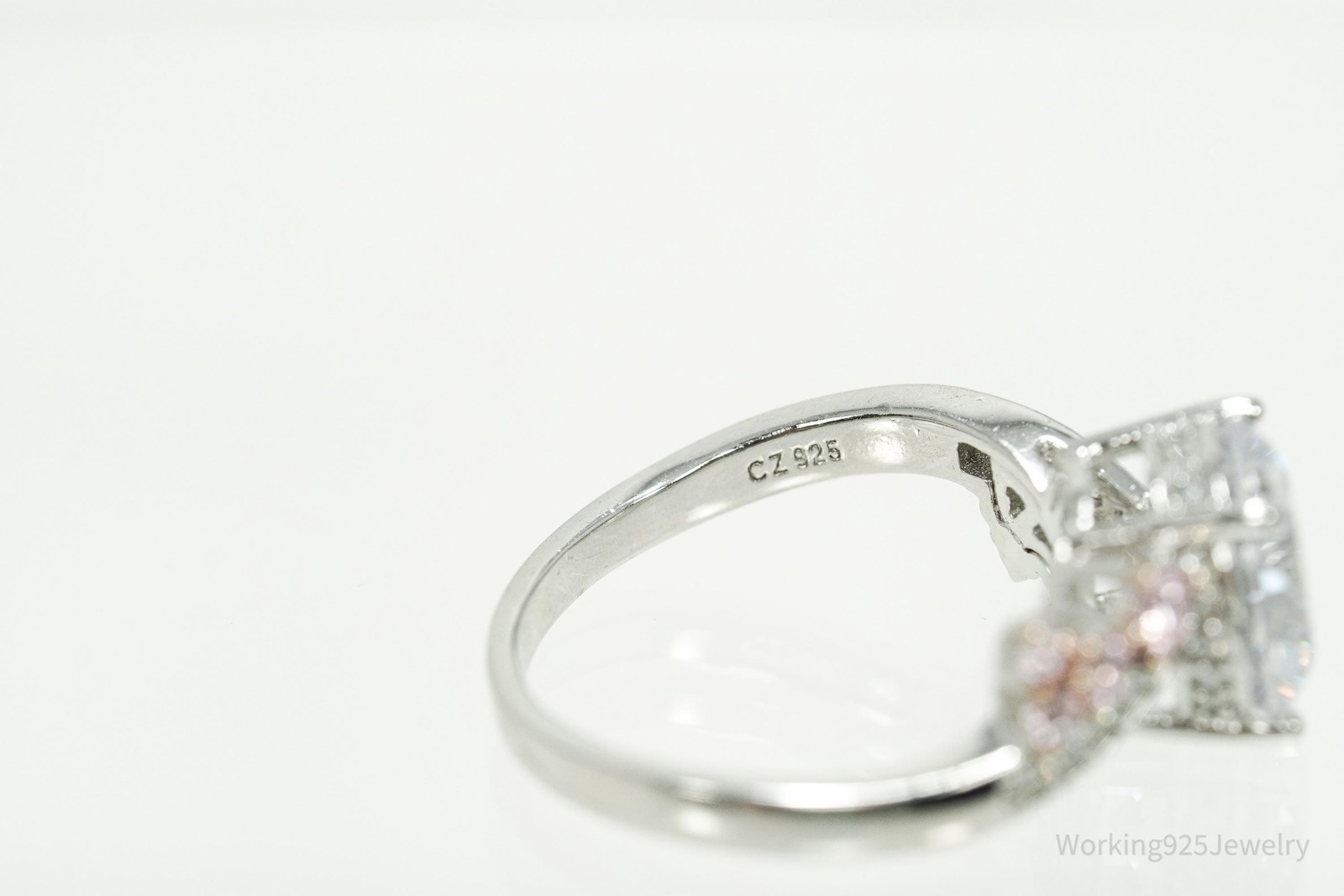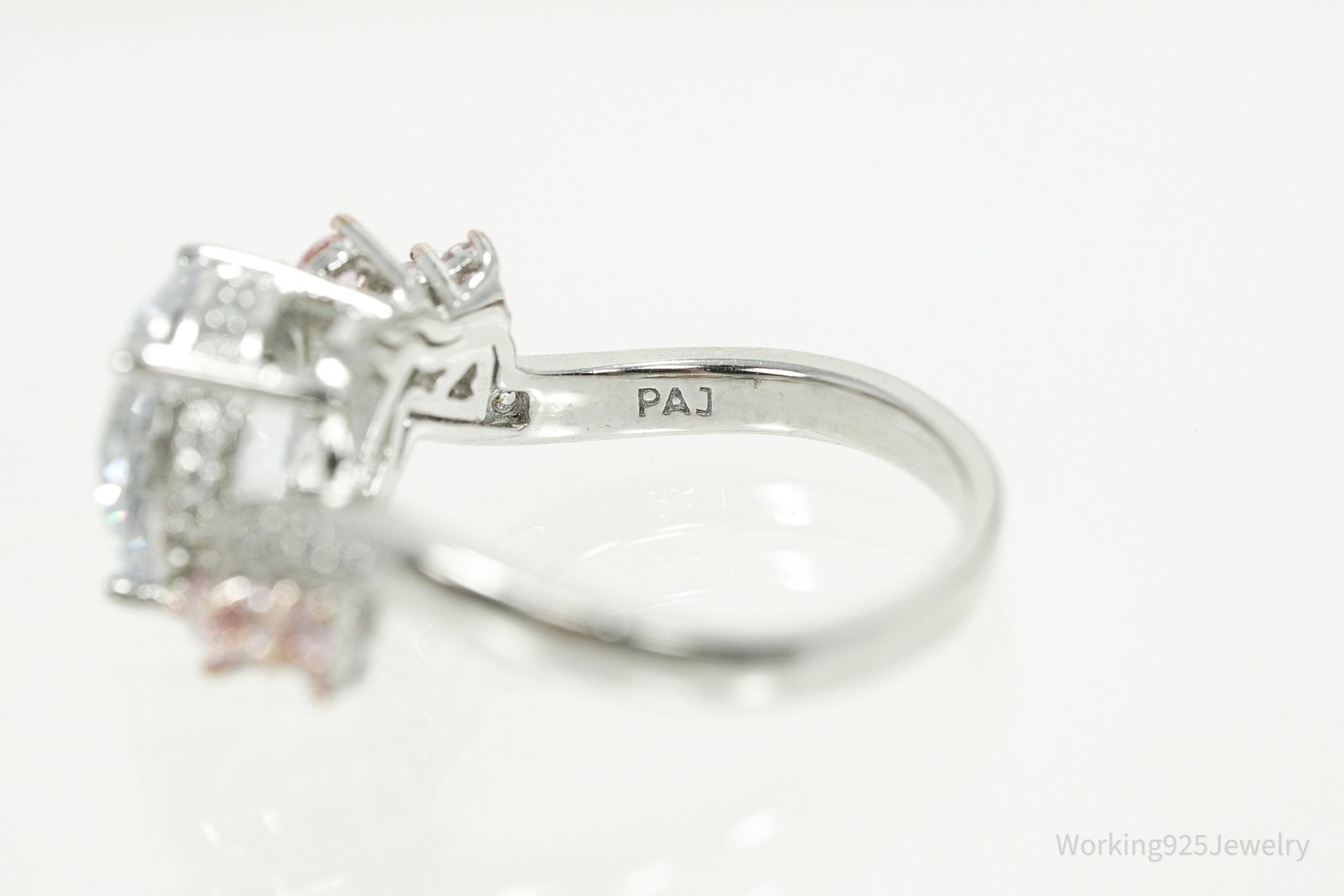 Vintage PAJ Pink White Cubic Zirconia Sterling Silver Ring - Size 6