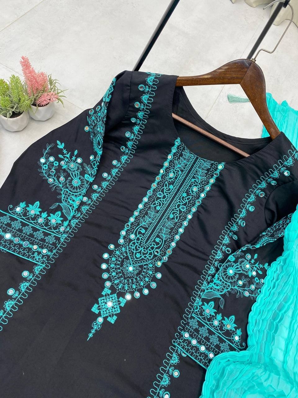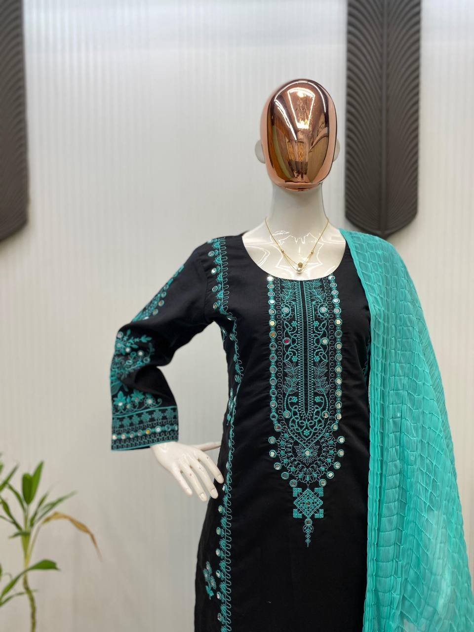 Attractive Look Black Roman Silk Top Palazzo With Dupatta For Women And Girls
