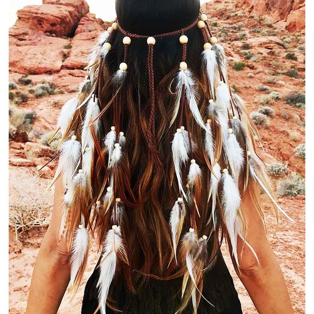Boho Feather Headbands Hippie Gypsy Indian Hairbands Tassels Head Piece Costume