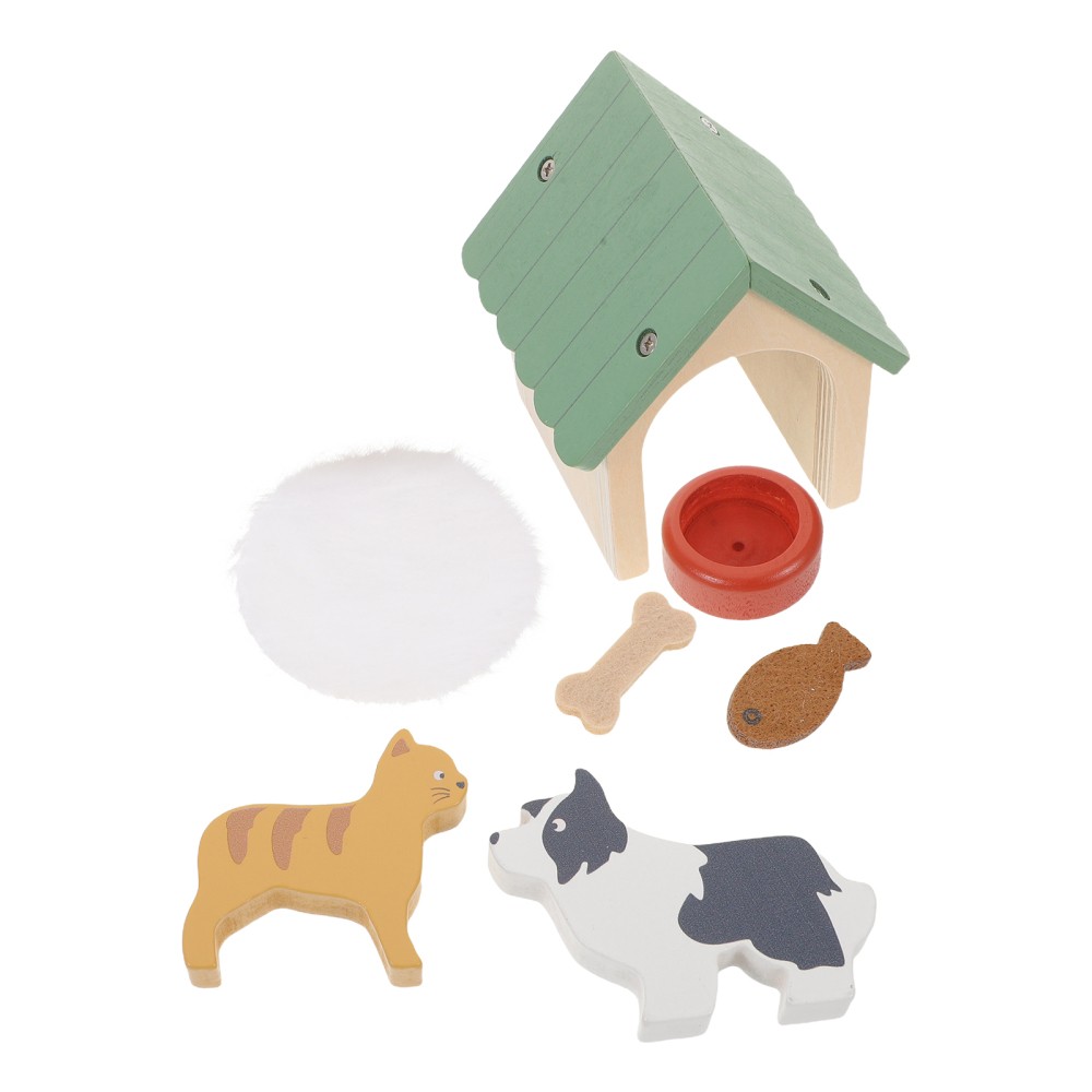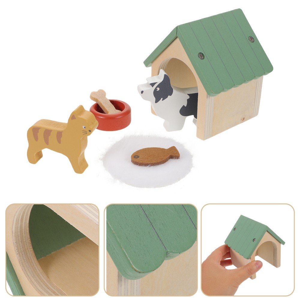 как выглядит Pet Simulation Feeding Set Dog House Toys for Kids Dollhouse Miniature Kennels фото