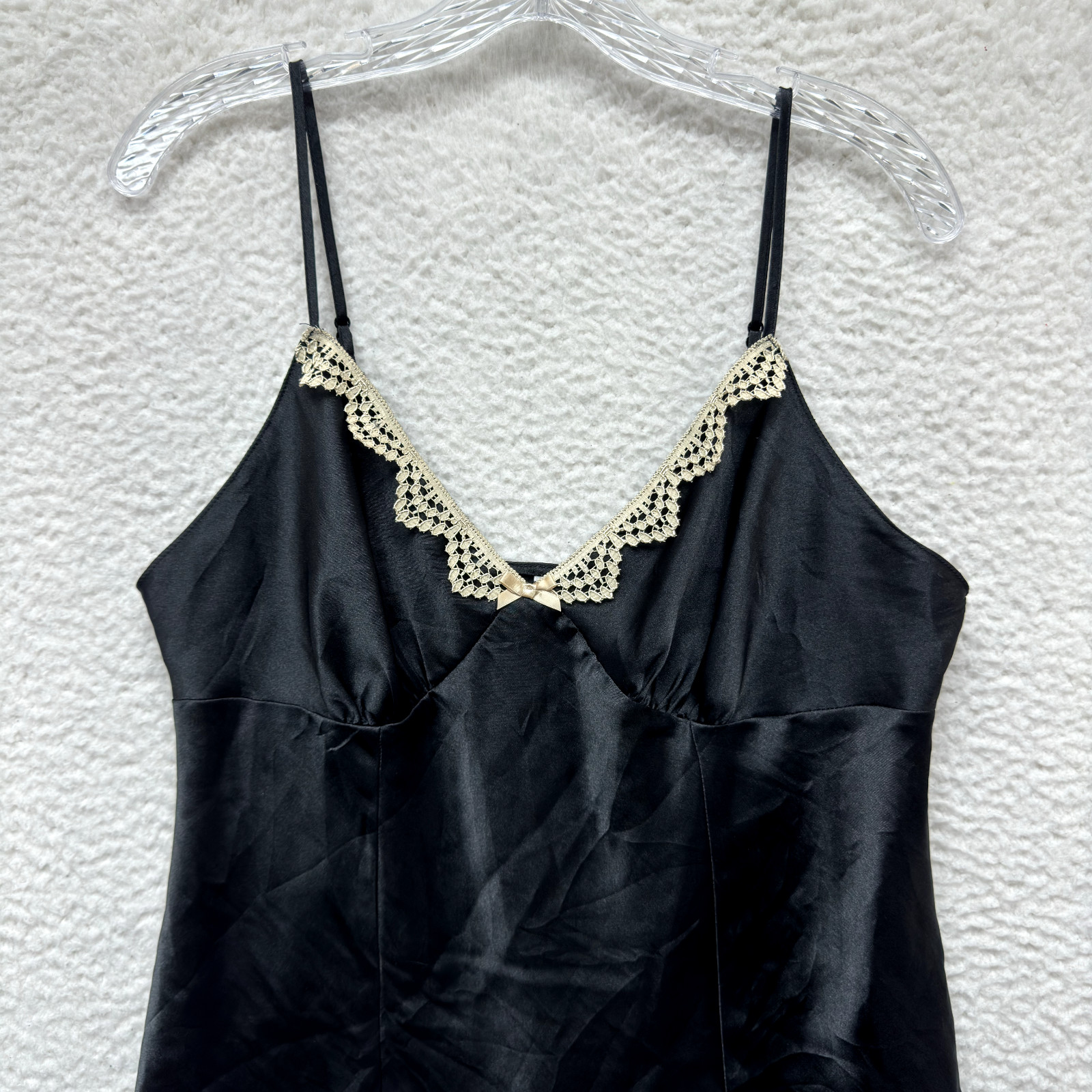 Y2K Vintage Gilligan O'Malley Slip Dress Large Black Satin Lace Chemise