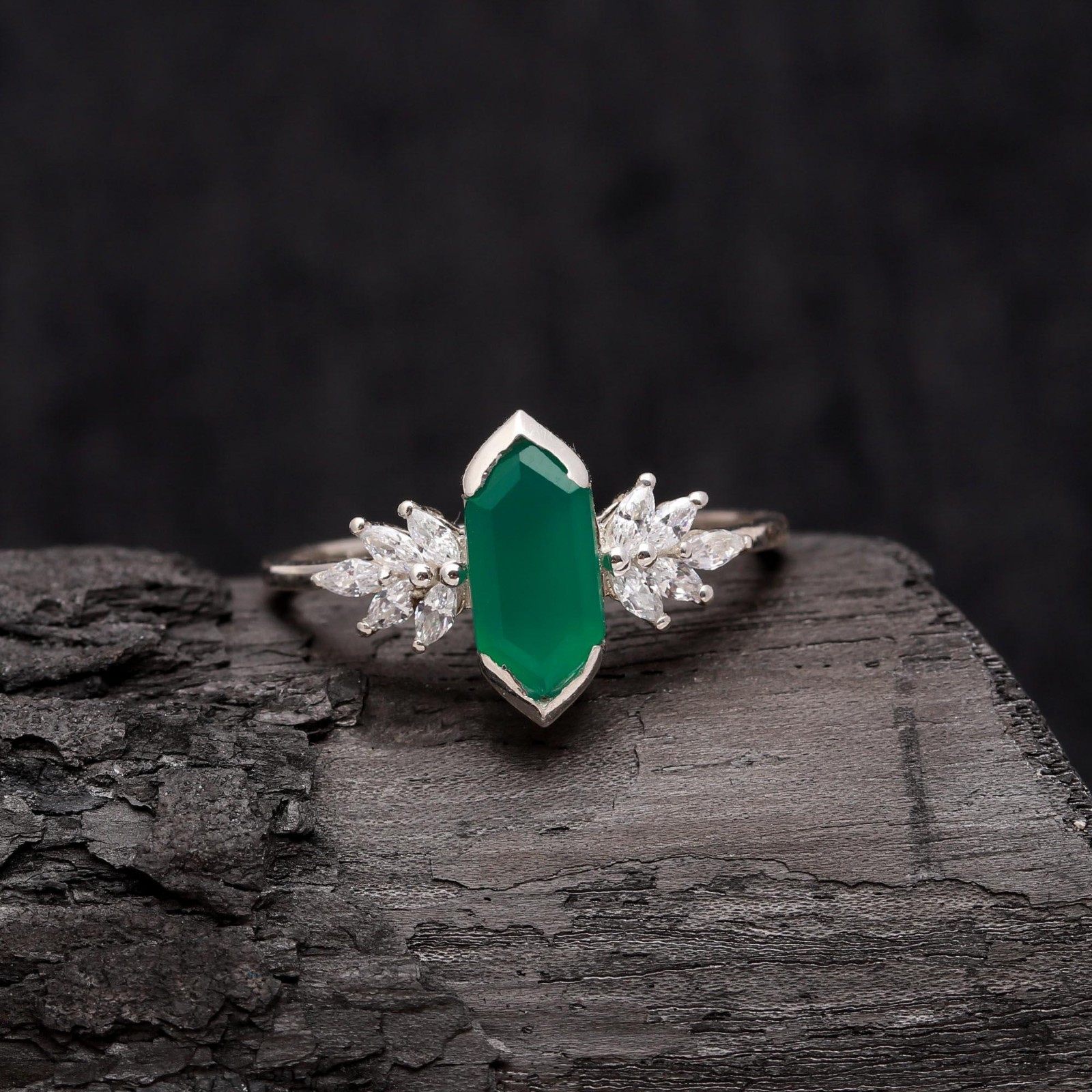 Natural Green Onyx Hexagon Ring, 925 Sterling Silver handmade Ring For Gift Wife
