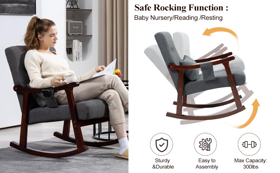 Upholstered Rocking Chair with Massage Support Pocket, Glider Chair Nursery Rock