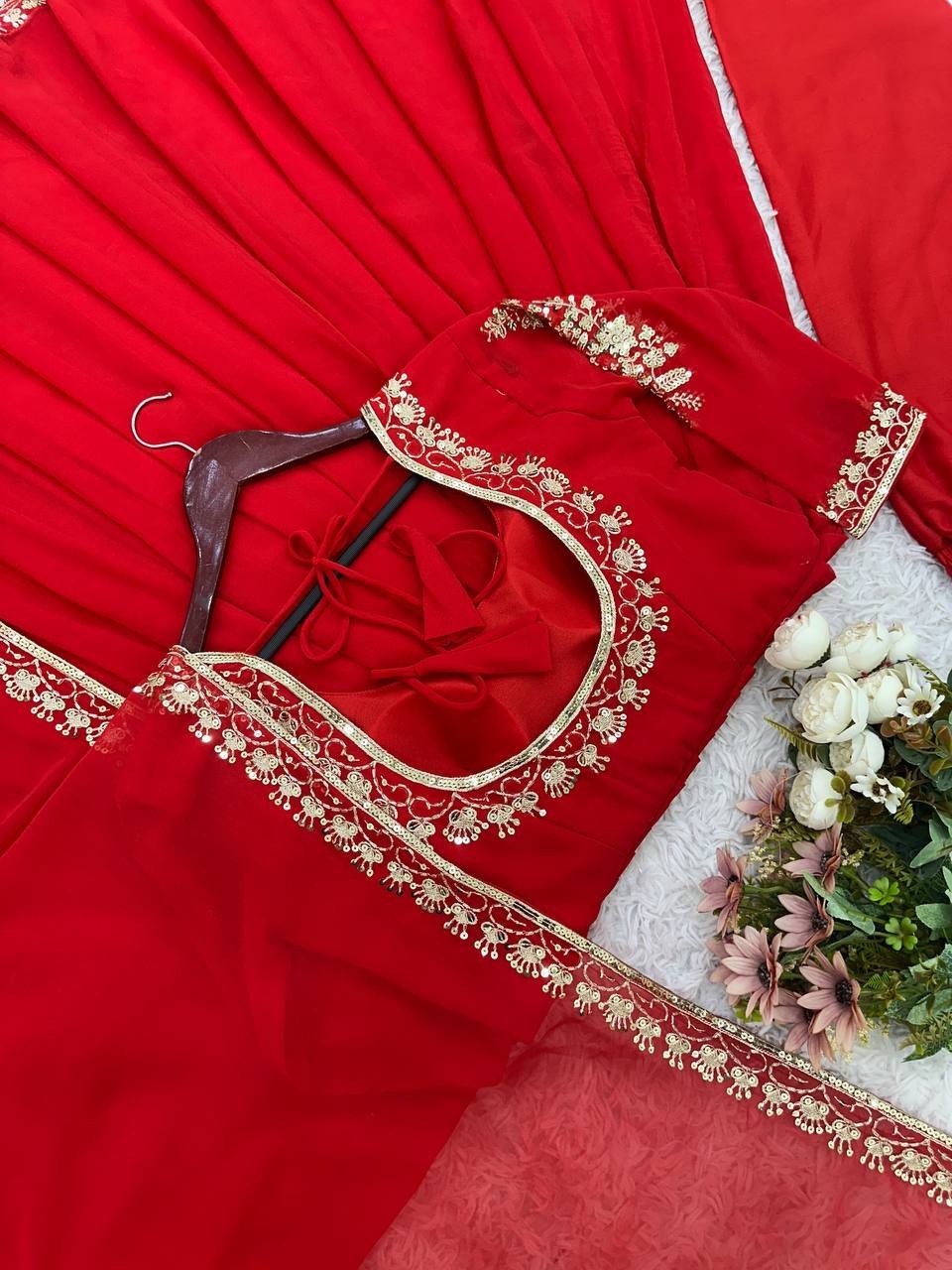 Readymade Heavy Faux Georgette Red Gown Bottom With Dupatta For Wedding Wear
