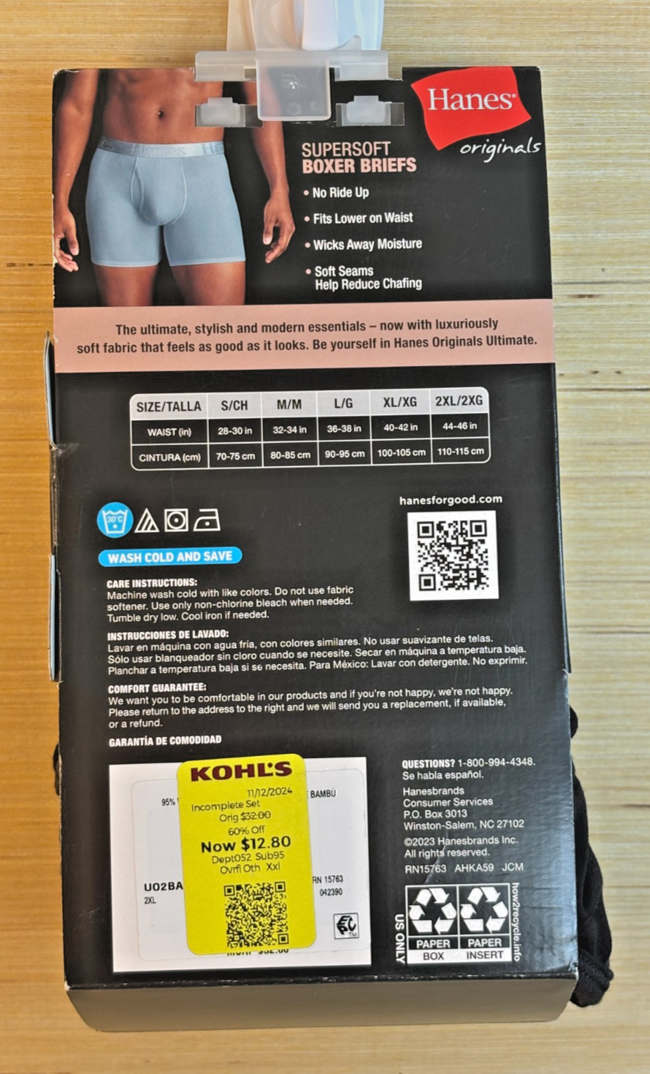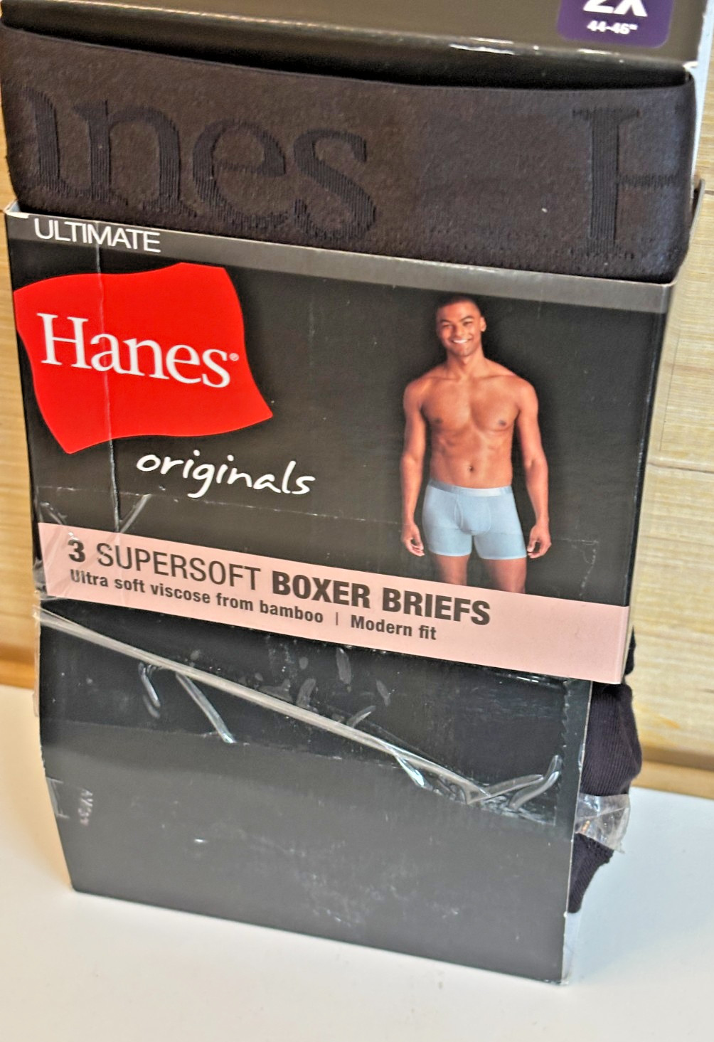 Hanes Originals Ultimate Men's SuperSoft Boxer Brief Underwear, Black, 3-Pack 2X